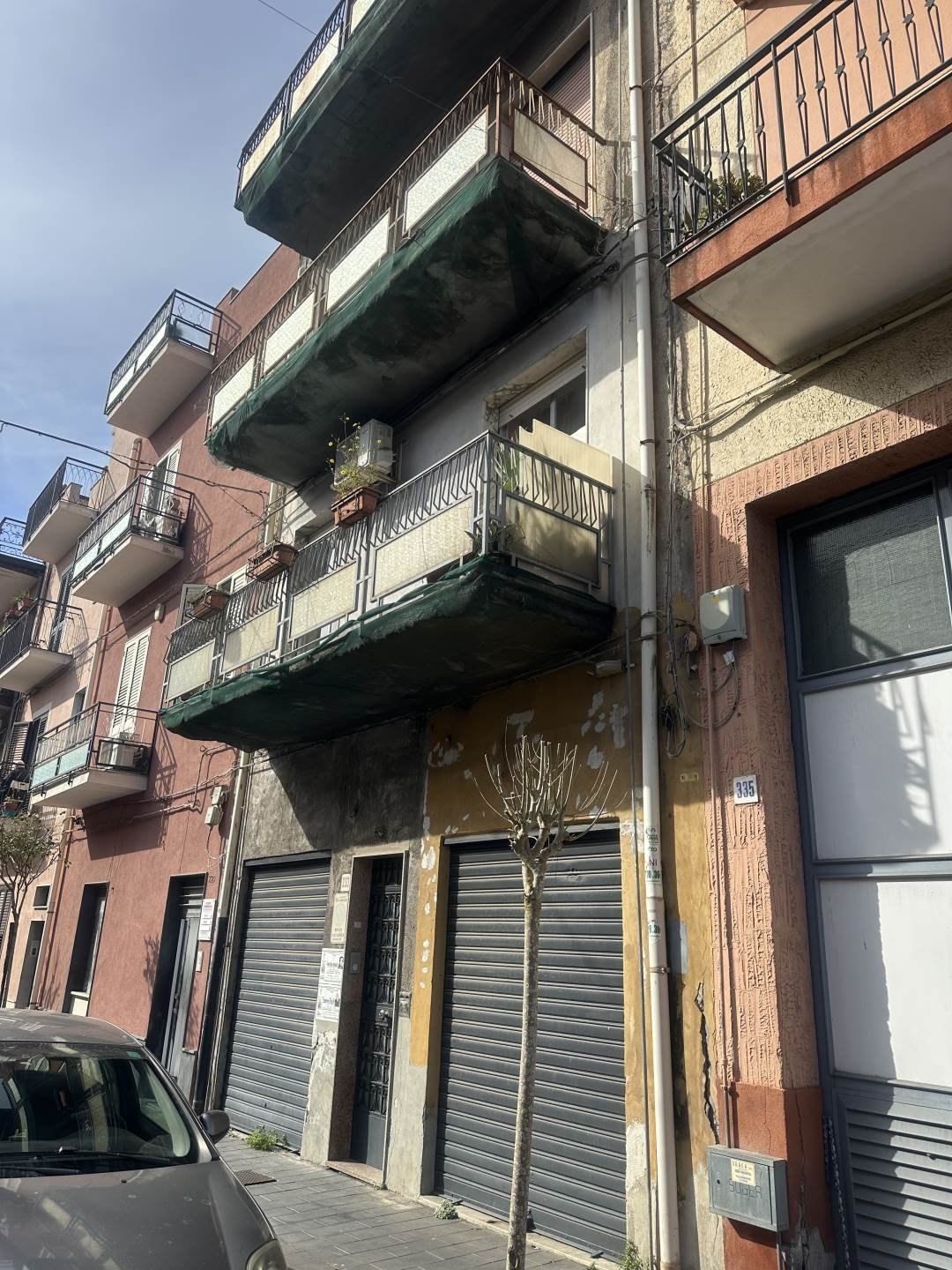 Misterbianco via matteotti - proponiamo in vendita un appartamento di circa 95mq con garage e terrazza. L'appartamento, al primo piano, è composto da tre camere, cucina abitabile e bagno, balcone su strada; il garage al piano terra, di 35mq, ha un ingresso largo 2m; la terrazza, al terzo piano, comprende un vano ripostiglio. Il tutto è da ristrutturare. Prezzo eu. 108.000. Infotel Classe energetica: g