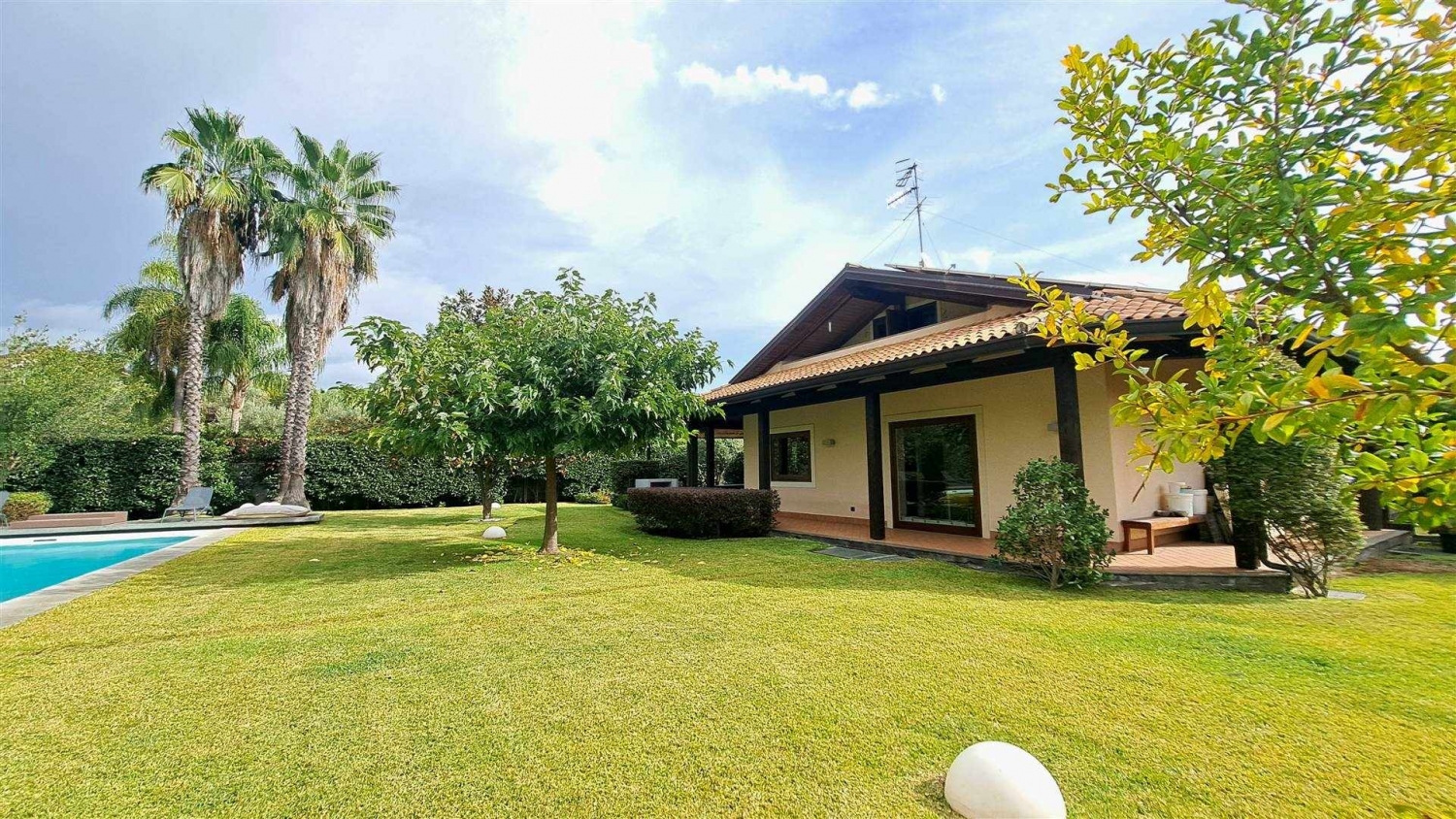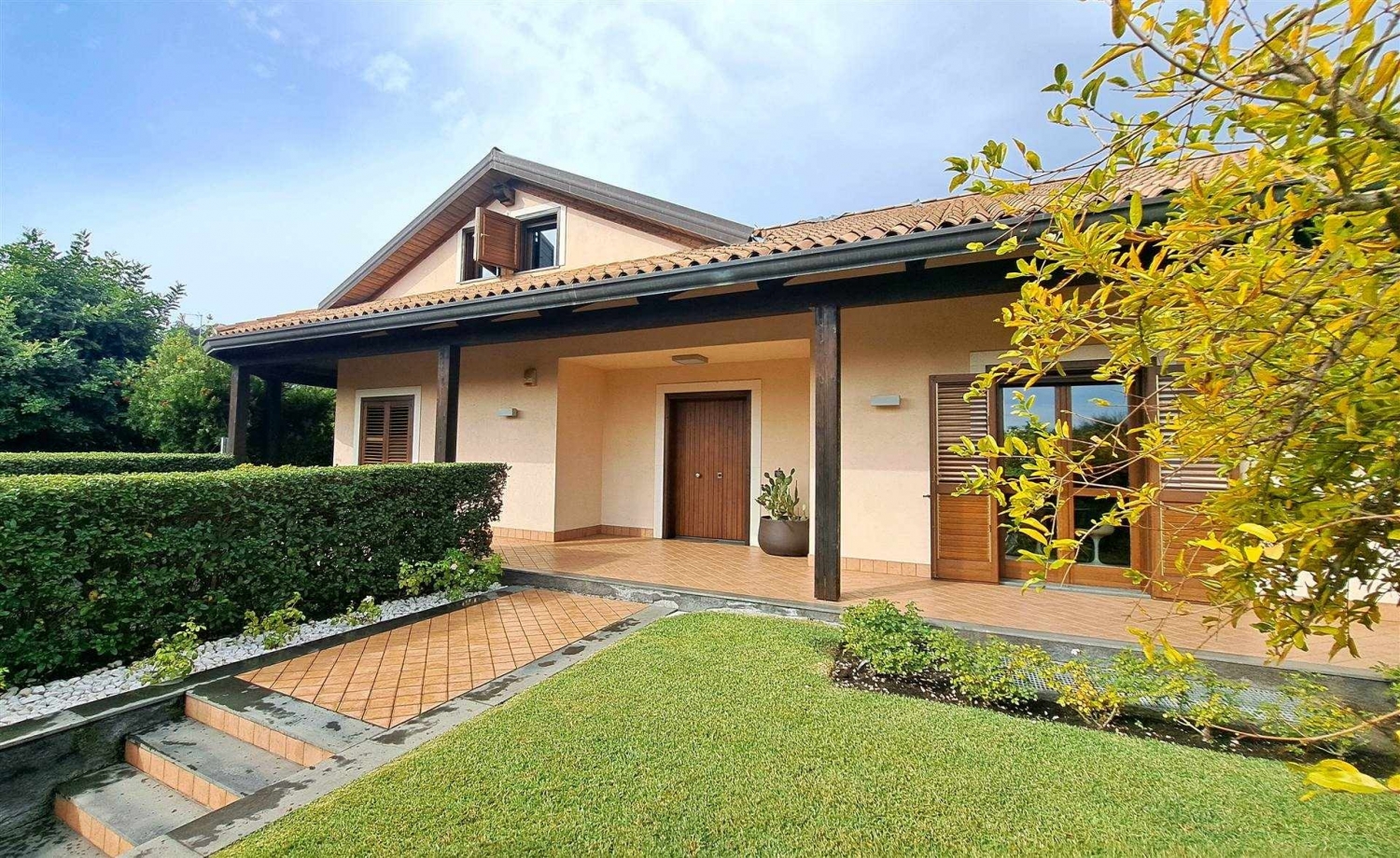 In un contesto residenziale tranquillo, riservato ed elegante, a pochi minuti dal centro di viagrande, proponiamo in vendita una raffinata villa singola immersa in uno splendido giardino piantumato, ideale per chi desidera vivere circondato dal verde senza rinunciare a comfort, privacy e qualità abitativa. La proprietà, realizzata con materiali di alto pregio e curata nei minimi dettagli, si distingue per l'ampio utilizzo del legno che dona agli ambienti un'atmosfera calda e sofisticata: parquet naturale nei pavimenti e travi a vista nella suggestiva zona mansardata impreziosiscono ogni spazio con uno stile elegante e senza tempo.un'ampia saletta d'ingresso introduce alla zona giorno della villa, dove da un lato si apre uno spazioso salone di rappresentanza con camino, perfetto per accogliere ospiti o trascorrere piacevoli momenti di relax, e dall'altro una moderna cucina all'americana con isola centrale. La cucina ha accesso diretto a un patio coperto, ideale per vivere gli spazi esterni durante tutto l'anno, arricchito da comodi divani in muratura pensati per momenti conviviali all'aperto. Adiacente alla cucina si trova una sala da pranzo dedicata, mentre le ampie vetrate presenti negli ambienti principali garantiscono grande luminosità e regalano una piacevole vista panoramica sul parco e sulla piscina. Il piano è completato da una suite padronale con cabina armadio, un bagno con vasca idromassaggio e un disimpegno.una elegante scala interna conduce al piano superiore, uno spazio pensato per la vita privata e il relax della famiglia, dove troviamo due ampie camere da letto con balconi panoramici, un soggiorno privato ideale anche come area studio e un bagno dedicato. Il tetto con travi in legno a vista rende questi ambienti particolarmente accoglienti e ricchi di charme.il piano seminterrato offre spazi generosi e versatili, perfetti per diverse esigenze: un'ampia area che può essere utilizzata come taverna, sala giochi o palestra privata, una camera per ospiti, un bagno completo e una cantina o dispensa. Completa il livello un garage doppio di circa 40 mq, collegato internamente all'abitazione e accessibile anche dall'esterno tramite una comoda rampa.il pregio della proprietà è ulteriormente valorizzato dal meraviglioso giardino privato di circa 1.400 mq, pianeggiante, completamente recintato e arricchito da siepi e alberi ornamentali che garantiscono riservatezza e facilità di manutenzione. Il parco è impreziosito da prato all'inglese, una splendida piscina con area solarium e un portico coperto che circonda tutti e quattro i lati della villa. Il pavimento in piastrelle color cotto e le travi a vista in legno conferiscono agli spazi esterni un'eleganza naturale in perfetta armonia con il paesaggio circostante.la villa, costruita con grande attenzione alla qualità costruttiva e ai dettagli architettonici, rappresenta una soluzione ideale per famiglie o per chi desidera vivere in un contesto di prestigio, immerso nella tranquillità ma allo stesso tempo in posizione strategica, comoda alle principali vie di collegamento e ai servizi. La proprietà dispone inoltre di impianto termoautonomo, infissi termici, impianto fotovoltaico ed è situata all'interno di un contesto residenziale esclusivo con accesso da strada privata e cancello automatico.per informazioni e visite:iemmeeuropa di natascha jeuck srlcorso italia 302 catania classe energetica: c
