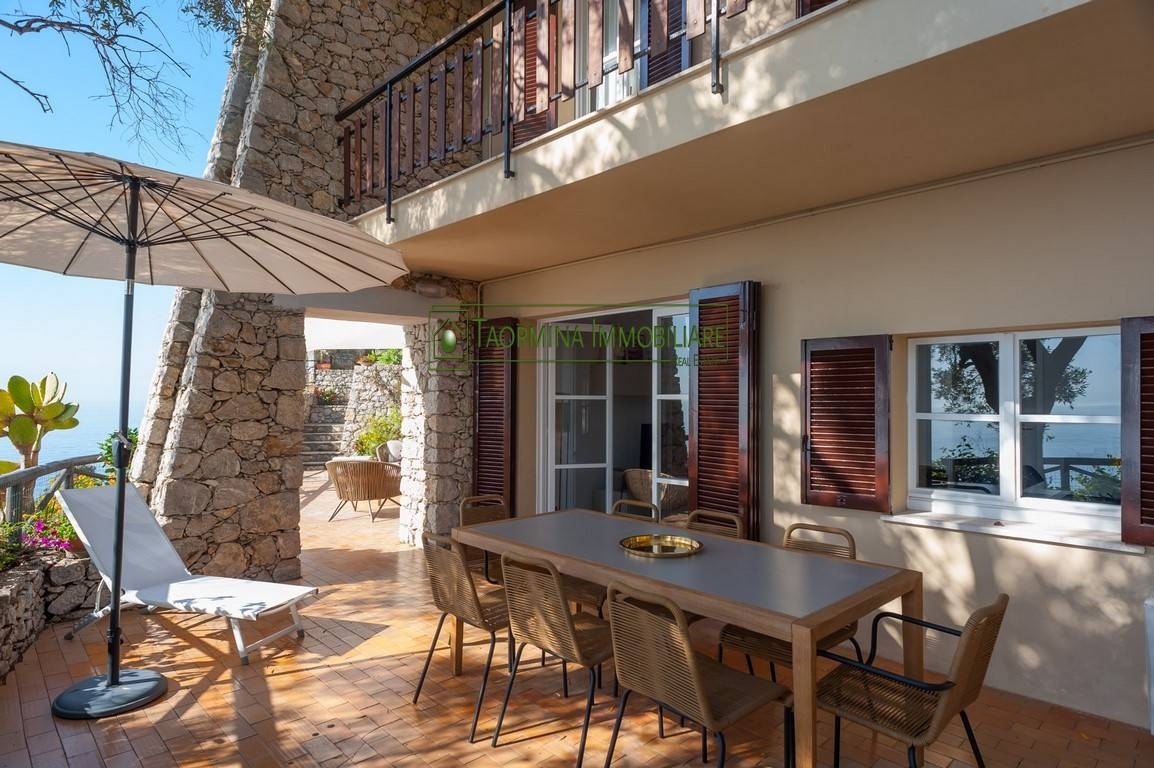 Nella splendida cornice dellisola bella di taormina, si trova ubicata casa miss trevelyan . Splendido appartamento incastonato nel singolare complesso il suk, affacciato sulla baia isola bella di cui si gode la vista dal magnifico soggiorno con terrazzo privato a livello; tutto lappartamento arredato con mobili di design, dispone di tre camere da letto matrimoniali, ginestra, zagara e trinacria, climatizzate e con balcone con affaccio sul mare, due dependance completamente indipendenti, sikelia e aretusa, con camera matrimoniale e bagno privato, possono ospitare gli amici che vorranno condividere con voi le vacanze nella perla dello jonio. La cucina confortevole, dotata di tutti gli accessori utili, vi permetter di gustare le pietanze isolane che vorrete degustare, allietando lanimo con la splendida natura che vi offre questangolo incantato di mondo. Le vostre serate potranno anche essere allietate dalla mondanit del salotto buono di taormina che dista soli 3 km. Dal complesso, mentre le vs giornate potrete trascorrerle nella favolosa spiaggetta privata attrezzata ai piedi del costone di roccia che immerge nel mare blu dellisola bella. Il complesso dotato di parcheggio privato, offre ai propri ospiti anche la possibilit di fruire della meravigliosa piscina a sfioro sulla roccia, inoltre, casa miss trevelyan, dotata di tutti i comfort necessari per una vacanza da sogno, climatizzazione, zona esterna attrezzata, tv, wi fi, servizi wc dotati di phon, zona lavanderia con lavatrice, zona lettura relax ecc. Se pensi di trascorrere le tue prossime vacanze a taormina allora dovrai scegliere casa miss trevelyan. In the splendid setting of isola bella in taormina, is located 'casa miss trevelyan'. Splendid apartment nestled in the unique complex 'il suk', overlooking the bay 'isola bella' which you can enjoy the view from the magnificent living room with private terrace on the same level; the entire apartment furnished with designer furniture, has three double bedrooms, ginestra, zagara and trinacria, air conditioned and with a balcony overlooking the sea, two completely independent annexes, sikelia and aretusa, with double bedroom and private bathroom, can accommodate friends who want to share their holidays with you in the 'pearl of the ionian'. The comfortable kitchen, equipped with all the useful accessories, will allow you to taste the island dishes you want to taste, cheering your soul with the splendid nature that this enchanted corner of the world offers you. Your evenings can also be enlivened by the social life of taormina's elegant living room, which is only 3 km from the complex, while your days can be spent on the fabulous private beach equipped at the foot of the rocky ridge that immerses you in the blue sea of '?'?isola bella. The complex, equipped with private parking, also offers its guests the possibility of enjoying the wonderful infinity pool on the rock, furthermore, casa miss trevelyan, is equipped with all the comforts necessary for a dream holiday, air conditioning, equipped outdoor area, tv, wi fi, toilet facilities equipped with hairdryer, laundry area with washing machine, relax reading area etc. If you are thinking of spending your next holiday in taormina then you should choose casa miss trevelyan. - sc9605121
