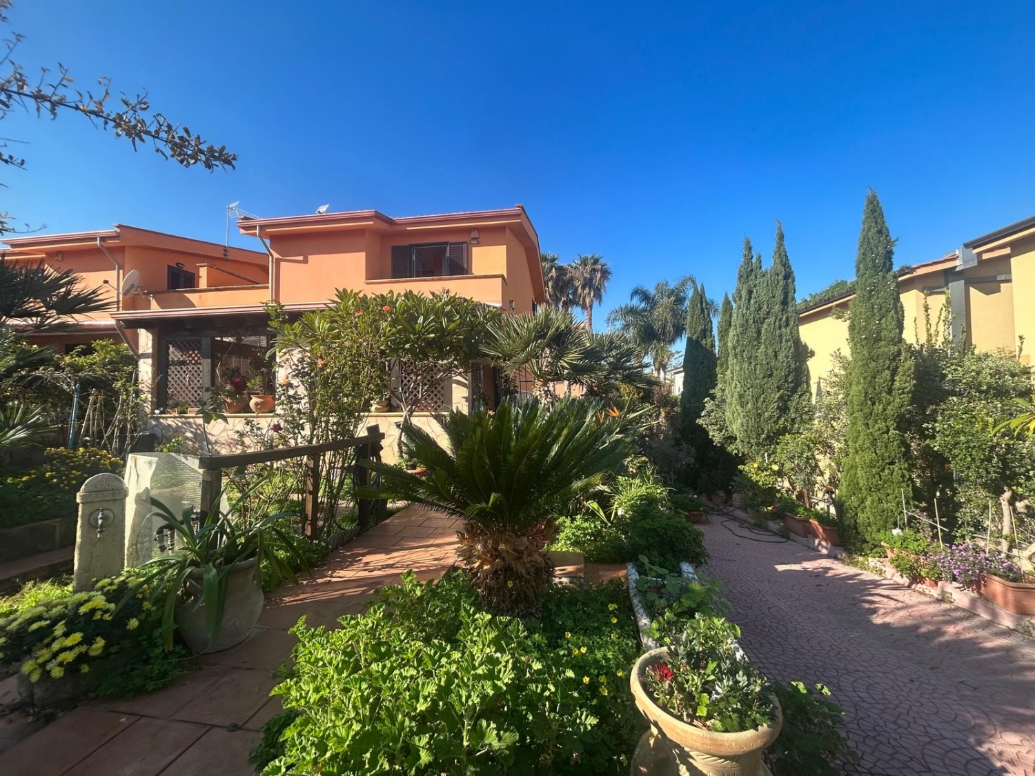 Altavilla Milicia nella provincia di Palermo in Sicilia, in contrada Santoro, in zona residenziale disponiamo in vendita una rifinita porzione di Villa Bifamiliare di 210 mq. su tre livelli oltre portico coperto, cucina esterna verandata, balconi e 500 mq. di spazi esterni di pertinenza.