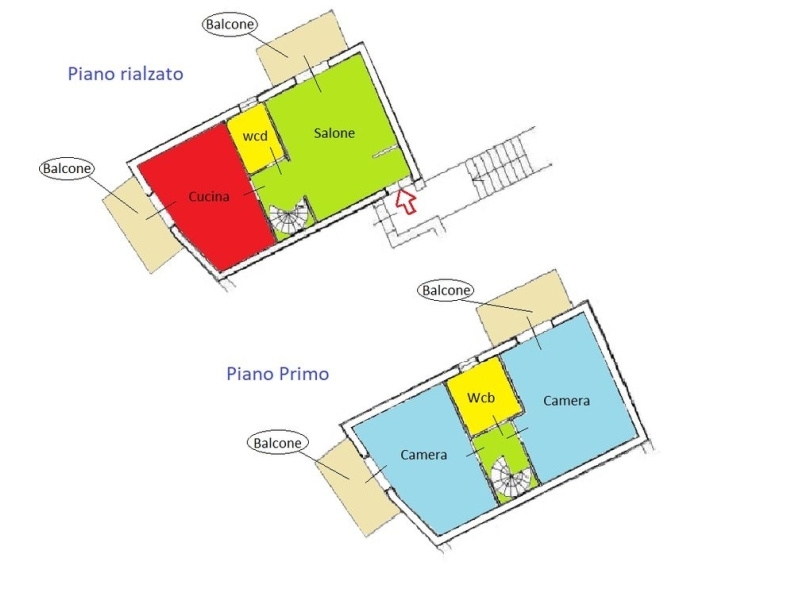 altofonte paese, via giovanni paolo ii scopri questo affascinante appartamento su due piani, costruito nel 2007, che unisce comfort e stile in uno spazio di 91 mq. Situato in un residence, l'ingresso con porta blindata ti accoglie in un living salotto luminoso con balcone. La cucina abitabile, dotata di angolo cottura in muratura, si apre su un secondo balcone, offrendo una bellissima panoramica, wc. La scala interna a chiocciola in legno e ferro conduce al piano superiore, dove si trovano due ampie camere da letto, entrambe con balcone e un servizio con vasca angolare.i pavimenti in gres porcellanato e le porte interne in legno esaltano l'eleganza degli interni, mentre gli infissi in alluminio con vetro camera garantiscono isolamento termico e acustico. Completa la proprietà  un posto auto coperto, accessibile tramite cancello automatico e una cantina posta al piano seminterrato. Goditi la vista panoramica e il comfort del riscaldamento autonomo a metano. Classe energetica e, per un consumo efficiente di 99,37 kwh/m anno. Non perdere l'opportunità di vivere in questo appartamento unico!