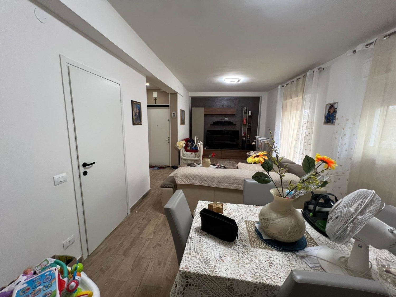 Baharia immobiliare propone in vendita, in zona servita e centrale (zona via mattarella commissariato di polizia), un luminoso appartamento ristrutturato nel 2024, posto al 1° piano di uno stabile che si eleva fino al 5°. Area ben servita, nelle immediate vicinanze di servizi e attività commercialicomposizionel'immobile si sviluppa con una distribuzione funzionale e ben organizzata:• ingresso su ampio salone open space, con balcone e finestra• cucina abitabile con zona lavanderia semidisimpegnata e balconcino su pozzo luce• camera da letto matrimoniale con armadio a muro e finestra su intercapedine• seconda camera matrimoniale con finestra su intercapedine• camerino/cameretta con finestra alta con grate su vano scala• due wc doccia (uno zona giorno, uno zona notte), entrambi con finestra su pozzo luce• corridoio con armadio a muro e moderne luci segnapassodotazioni e comfort• porta blindata• porte interne nuove (leroy merlin)• infissi in alluminio con vetrocamera• predisposizione aria condizionata in tutti gli ambienti• centralina di sicurezza contro perdite di gas in cucina• esposizione doppia• utenze autonome (acqua con distacco condominiale e contatore luce autonomo)• metano presente nel palazzoil balcone principale è già stato ristrutturato.________________________________________autorimessa di 145 mq (punto di forza dell'immobile)ampio garage allo stato grezzo ma pulito, con:• capienza fino a 6 auto• scivolo con altezza minima 2,5 m• serbatoio idrico personale da 3.000 litri (riempimento giornaliero per caduta, senza motore)• impianto di videosorveglianzauna soluzione ideale per famiglie numerose, professionisti o per chi necessita di ampio spazio deposito/magazzino.________________________________________prezzo: eu. 150.000 non trattabiliper informazioni e appuntamenti:baharia immobiliaretel classe energetica: e