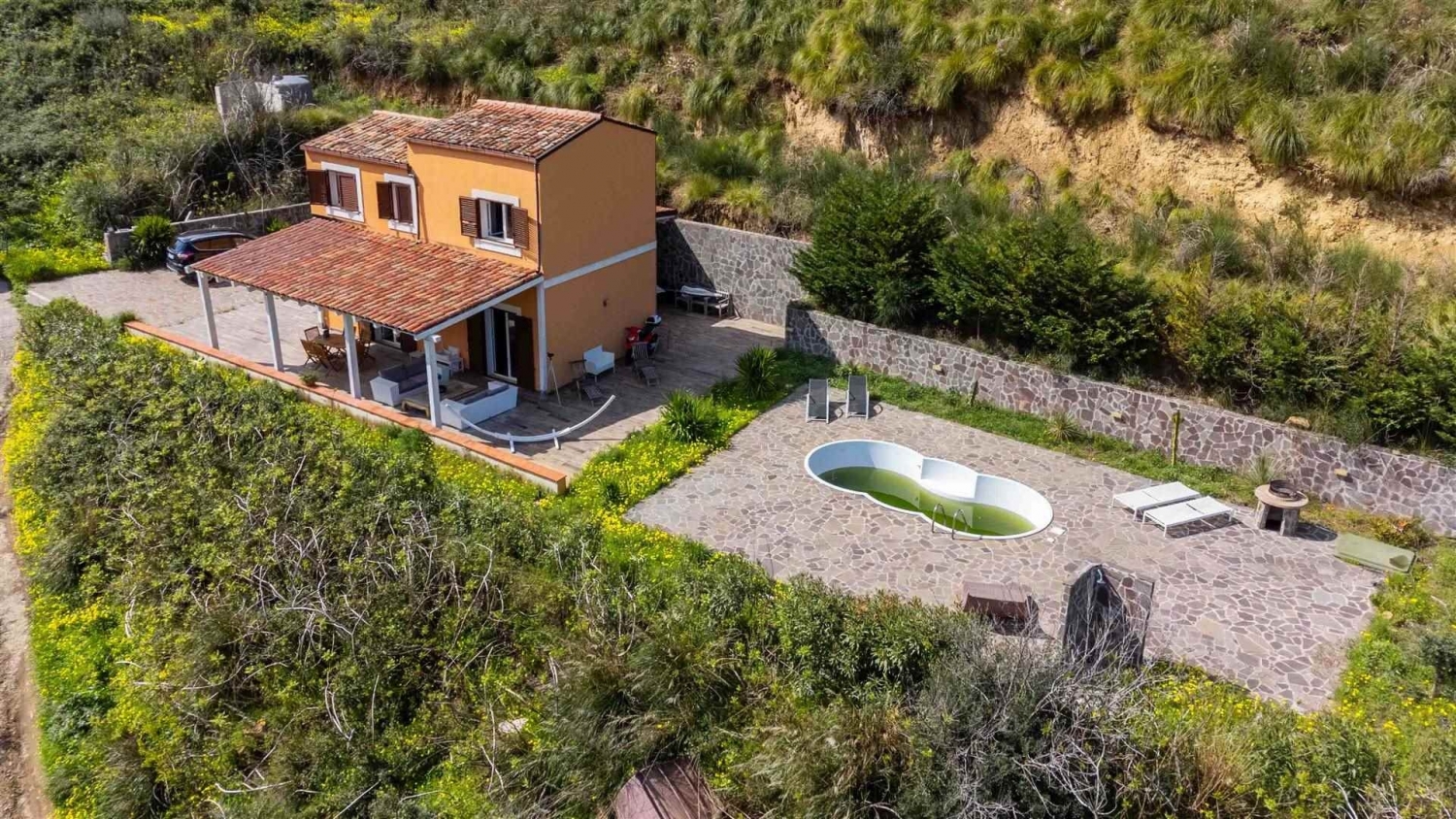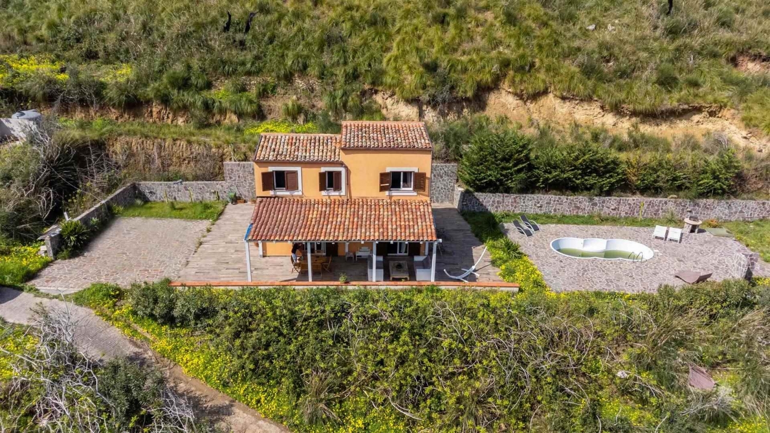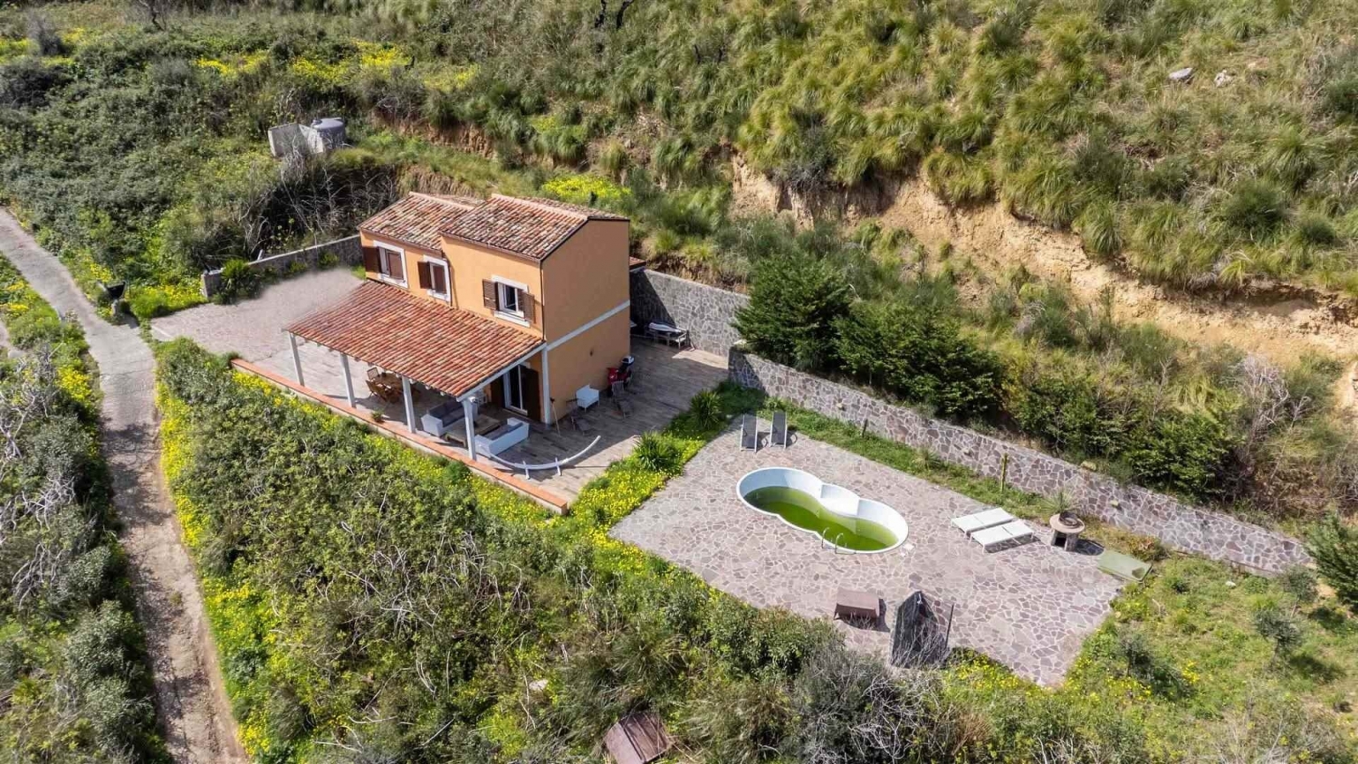 Nel suggestivo territorio di cefalù, precisamente in c.da san biagio, a soli 7 km dal centro e da tutti i principali servizi, l'agenzia kefaimmobiliare è lieta di presentare in esclusiva una dimora con piscina semplicemente straordinaria, immersa nella quiete della natura e circondata da ben 14.000 mq di terreno privato.questa splendida villa, con una superficie interna di circa 102 mq, rappresenta una soluzione abitativa versatile ed estremamente affascinante: perfetta come abitazione principale per chi desidera vivere lontano dal caos cittadino, ma ideale anche come residenza estiva per trascorrere momenti di puro relax, in un contesto di assoluta pace e tranquillità. Una proprietà pensata per chi ama la natura, gli spazi aperti e la privacy.l'immobile è stato oggetto di un'accurata ristrutturazione interna nel 2016, che ha saputo valorizzare ogni ambiente, fondendo armoniosamente comfort moderno e design raffinato. Gli spazi risultano funzionali, accoglienti e curati nei minimi dettagli e ben illuminati.all'esterno, la proprietà offre due incantevoli porticati, perfetti per vivere appieno ogni stagione: ambienti ideali per momenti di relax o convivialità, uno dei quali è dotato di una cucina estiva completa di forno, perfetta per pranzi e cene all'aperto in un'atmosfera unica.la disposizione interna si sviluppa su due livelli:piano terra: ingresso su luminosa zona living soggiorno-cucina, arricchita da una stufa a pellet (con possibiloita' di convogliare aria calda anche al piano superiore), un accogliente salotto/zona tv e un bagno completo con doccia.piano primo: accessibile tramite una caratteristica scala interna a chiocciola, ospita la zona notte composta da due camere matrimoniali e un secondo bagno con doccia.la zona esterna dedicata alla piscina è stata completamente ristrutturata nel 2021, regalando uno spazio esclusivo dove rilassarsi e godere appieno della bellezza del paesaggio circostante.tra le dotazioni della proprietà:-climatizzatori caldo/freddo.-pozzo privato con riserva idrica e recipiente da 5.000 litri.-fossa biologica installata nel 2018.la villa viene venduta anche arredata, completa della mobilia interna, risultando pronta per essere abitata fin da subito senza alcun intervento.per ulteriori informazioni o per organizzare una visita, rivolgersi all'agenzia kefaimmobiliare, che sarà lieta di accompagnarvi alla scoperta di questa incantevole dimora, dove comfort, natura e bellezza si incontrano in perfetta armonia. Classe energetica: e