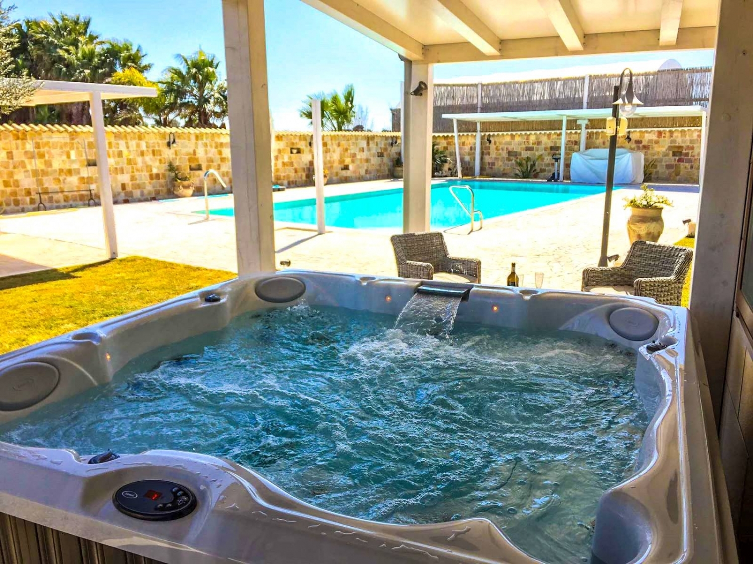 Ispica, santa maria del focallo: a meno di 3 km dalla cristallina spiaggia di santa maria del focallo, immersa nel verde delle campagne ispicesi proponiamo la vendita di una pregiata villa con piscina, pronta per essere abitata sin da subito. La villa si trova immersa in un lotto di terreno di circa 1800 mq arricchiti da svariate aree dedicate alla convivialità, un grande parcheggio, una strepitosa piscina a sfioro 6 x 12, un' atmosfera irripetibile e privacy.la proprietà presenta una dimensione utile di circa 170 mq sviluppati su due differenti livelli. All' ingresso veniamo accolti da un signorile salotto con camino a vista, travi in legno e una suggestiva vista sul giardino e l'area piscina. Al pieno terra troviamo le main suite della proprietà, due eleganti camere da letto con bagno en suite.sempre al piano terra godiamo di una cucina del tutto equipaggiata e realizzata in muratura, un area dedicata al relax e l'accesso alla veranda che anticipa l'area esterna e la zona dedicata alla jacuzzi.al piano superiore la proprietà si completa di due ulteriori camere da letto con bagno e un'area dedicata a zona studio/lettura.all'esterno inoltre è presente un'area dedicata alla lavanderia e il bagno di servizio alla zona piscina.la villa gode di un pozzo trivellato proprio, riscaldamento a gas garantito dal bombolone gpl, aria condizionata, videocitofono, infissi a taglio termico ed ogni tipologia di confort.