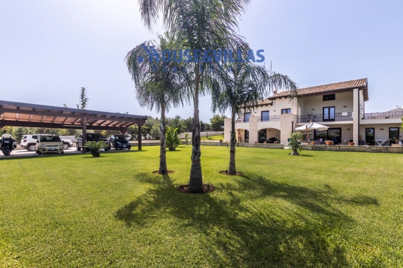 House&villas real estate propone in vendita villa con giardino in contrada chiusa di carlo ad avola, zona poco distante dal mare e dal centro storico. L'immobile è grande circa 400mq, si sviluppa su tre livelli ed è cosi composto: al piano terra troviamo un ampio open space con camino, una cucina abitabile, un cucinino, una bagno ed una lavanderia; al primo piano vi sono un ampio salone, uno studio ed una camera da letto con bagno in camera e cabina armadio; al secondo piano troviamo una mansarda composta da una camera da letto con bagno e cabina armadio. Completa la proposta un garage di circa 25mq. Il terreno di pertinenza della villa è grande circa 9000 mq piantumato a limoneto con 350 alberi produttivi. La villa è stata costruita nel 2018 ed è dotata di tutti i comfort: parcheggio auto interno, area giardino, impianto di allarme e videosorveglianza, trivella per uso domestico, gebbia per l'irrigazione del limoneto, pannelli solari, ampie verande e terrazzo con vista panoramica.