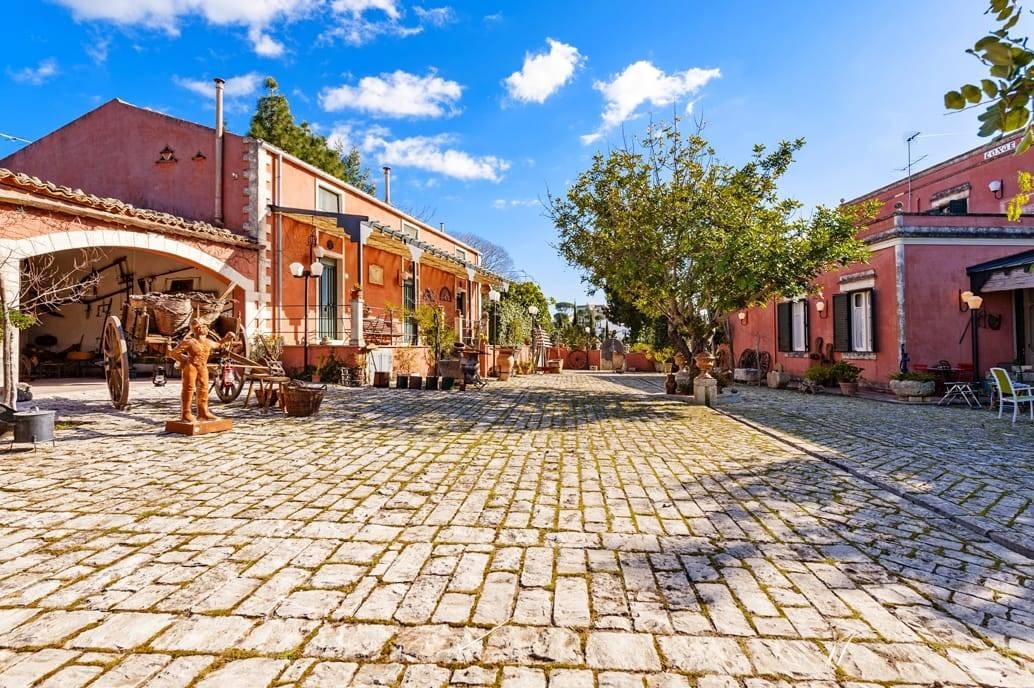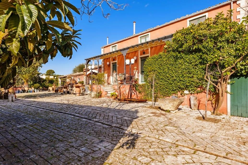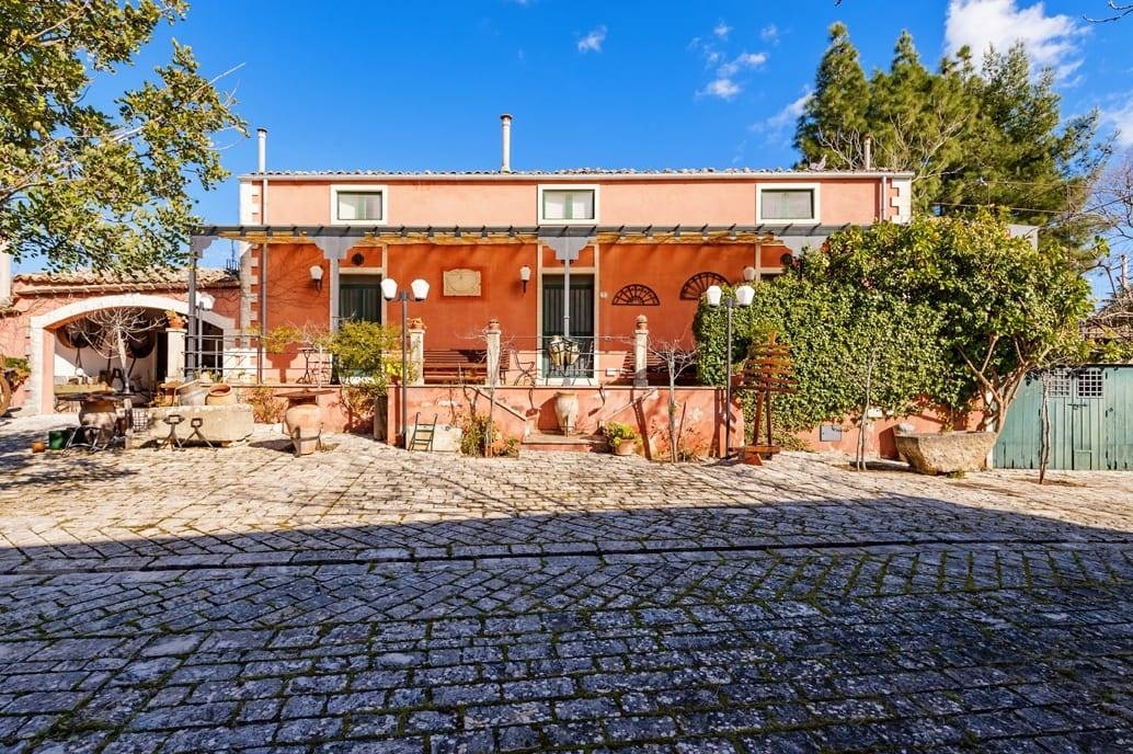 Noto capitale del barocco e patrimonio dell'unesco , arroccata su un altopiano a pochi chilometri da spiagge sabbiose e mare dai colori caraibici. nell'affascinante campagna di noto a pochi chilometri dal centro storico sorge una villa in stile liberty di circa 300 metri quadri su due livelli oltre una dependence di ulteriori e 300 m , ed ulteriori fabbricati pertinenze della proprietà stessa.la villa liberty e le dependances si trovano al centro del di un parco di 10.000 mq destinato ad uliveto, piante ornamentali , e un grande piazzale in pietra con fontana artistica , labirinto di siepe e camminamenti tipici dell'epoca.all'interno della proprietà è sita anche una tipica stalla del tempo con un forno a pietra e un'antica carretteria, utilizzata per custodire i calessi ed i carretti della nobiltà di quel tempi. la villa in stile liberty edificata primi 900, oggetto di restauro architettonico fine anni ' 90, si sviluppa su due livelli . al piano terra zona living ,zona dining , zona lettura/studio con camino, prospicienti su terrazza con scala monumentale, una camera da letto e 2 bagni. dal living una comoda scala porta al secondo livello dove sono ubicate ulteriori 2 camere da letto con bagni ed un grande vano di passaggio per zona relax o studio, con affaccio su grande terrazzo a livello con vista sulla vallata . la villa, sul prospetto principale presenta una grande terrazza con vista sul parco con scale in stile liberty, che conducono ad area di svago esterna caratterizzata da una scacchiera in pietra di grandi dimensioni . la parte posteriore della villa ove è presente un accesso di servizio , e' caratterizzata da un grande piazzale in basole di pietra che conduce a un edificio separato , composto da tre singoli appartamenti , che diventano depandance ma anche la possibilità di utilizzo autonomo .queste tre singole unità si sviluppano su due livelli composte rispettivamente da una zona soggiorno living cucina e bagno, e al piano superiore camera da letto . la proprietà ha inoltre due garages, un grande vano denominato stalla una casa con forno a pietra, un antico ricovero bellico sotterraneo trasformabile in moderna cantina. all'interno del parco, a circa 80 m di distanza si erge un tipico ricovero dei calessi, dal fascino antico , ancora da restaurare, che si presenta come un grande loft di notevole appeal e varie possibilità di utilizzo. la proprietà ha piu accessi esterni e si trova nella campagna di noto nella zona san corrado fuori le mura, garantendo una notevole amenità e riservatezza, con la possibilità di creare un grande piscina. è ipotizzabile sia un uso residenziale che turistico ricettivo di elite. classe energetica: g epi: 123 kwh/m2 anno