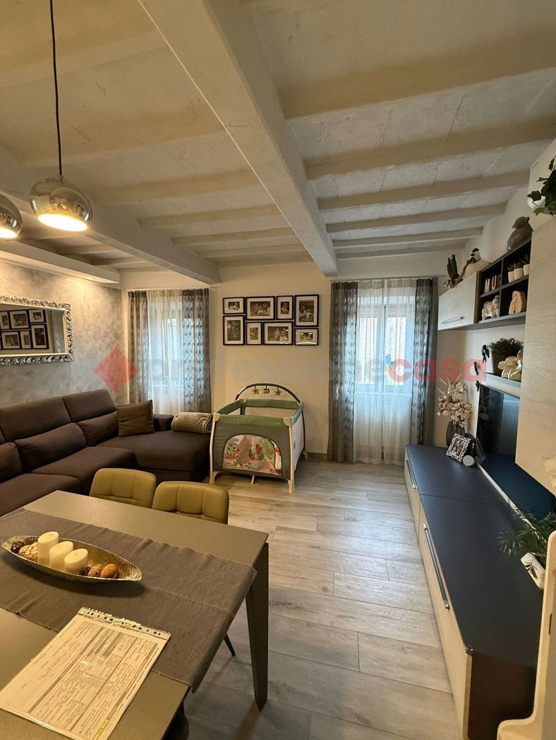 Professionecasa: in posizione tranquilla e immersa nel verde, proponiamo in vendita un delizioso appartamento trilocale di circa 78 mq, situato al secondo e ultimo piano di un caratteristico terratetto bifamiliare composto da sole due unità, senza spese condominiali. L?immobile, completamente ristrutturato nel 2018 con cura e attenzione ai dettagli, si compone di una luminosa zona giorno con soggiorno e angolo cottura, una spaziosa camera matrimoniale con bagno privato en suite, una comoda cameretta e un secondo bagno finestrato, completo di doccia. A completare la proprietà, una soffitta coibentata ideale come ripostiglio o zona multiuso. La casa è dotata di aria condizionata, infissi in legno con doppio vetro e caldaia nuova installata nel 2024, per un perfetto equilibrio tra comfort ed efficienza. Ideale per chi cerca una soluzione pronta da abitare, in un contesto riservato ma ben collegato. Rif. Vt129