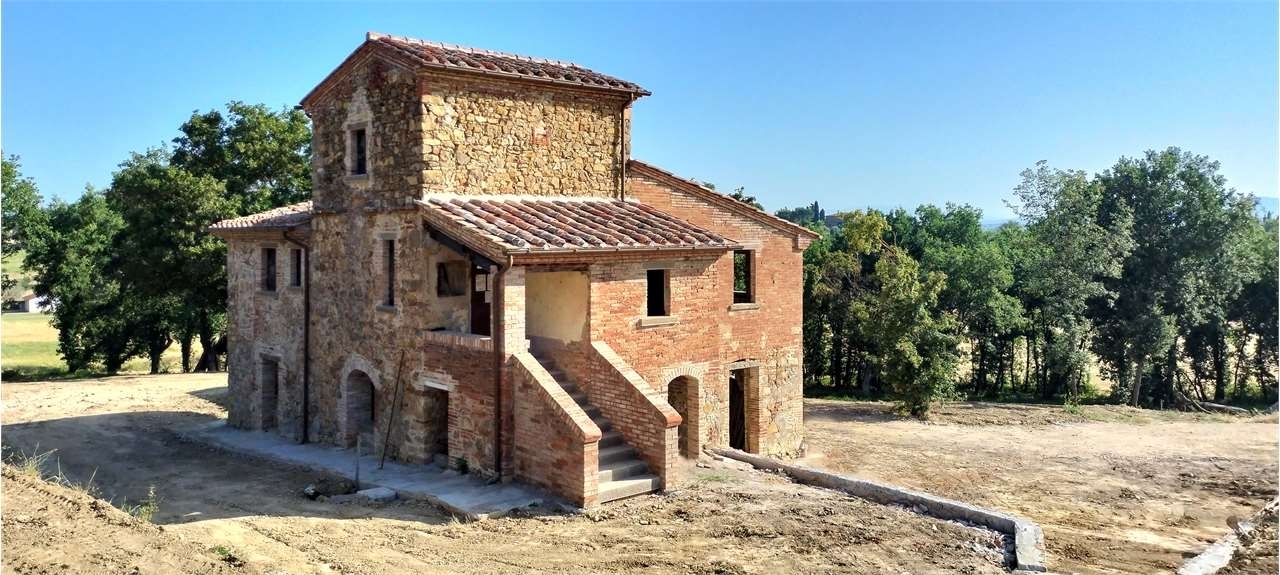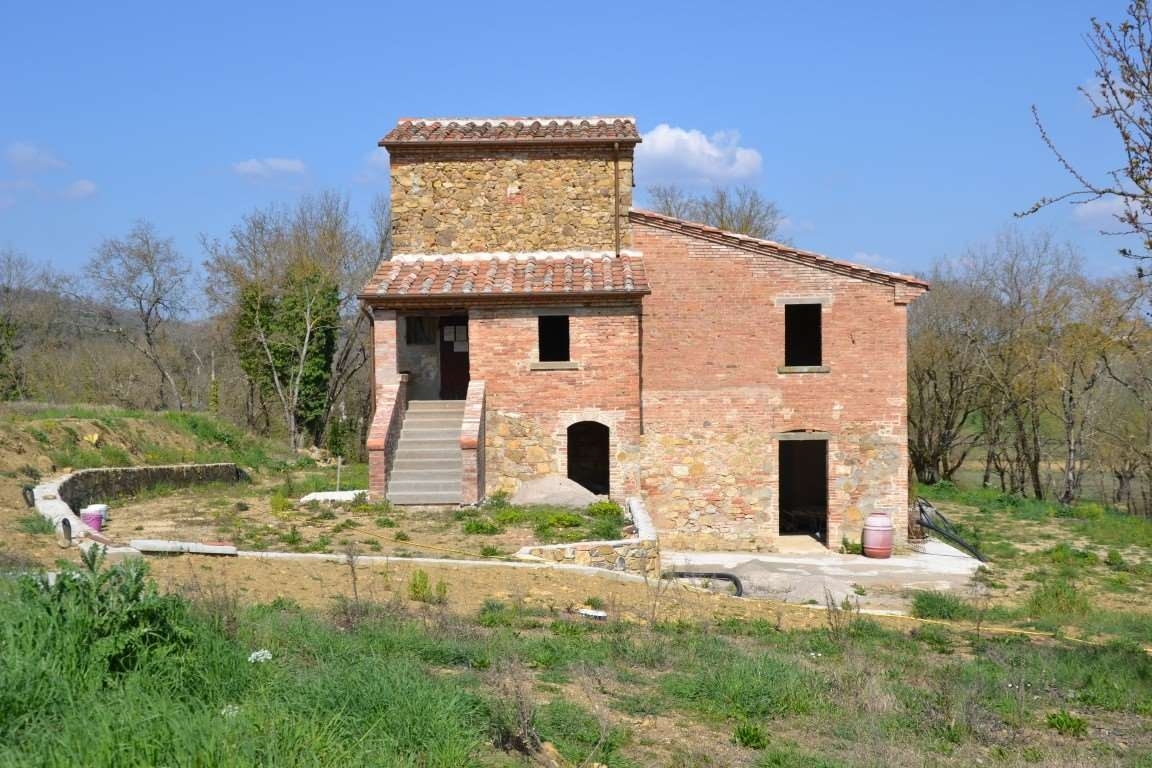 Lucignano, in uno dei borghi più belli d'italia in posizione incontaminata e contornata dal verde della tipica campagna toscana, vendesi bella casa colonica tutta ristrutturata allo stato grezzo in cui sono stati eseguiti tutti i lavori per rendere il fabbricato antisismico, iniziando dalle fondazioni, cordoli perimetrali, solai e tetto; il fabbricato ha una superficie complessiva di mq 250 circa e si sviluppa su tre livelli; le murature esterne sono tutte in pietra e mattoni faccia-vista, la struttura tipica è particolarmente mossa ed articolata, donando all' edificio una piacevole armonia, inoltre sia all' esterno che all' interno sono mantenute le caratteristiche originali. Adiacente si trova la vecchia porcilaia di mq 20 circa, anch' esso già ristrutturata al grezzo, la quale può essere convertita a civile abitazione; c'è un pozzo artesiano con acqua in abbondanza. Completano la proprietà terreno di circa 3 ha. Tra cui un bellissimo oliveto in piena produzione. classe energetica: g