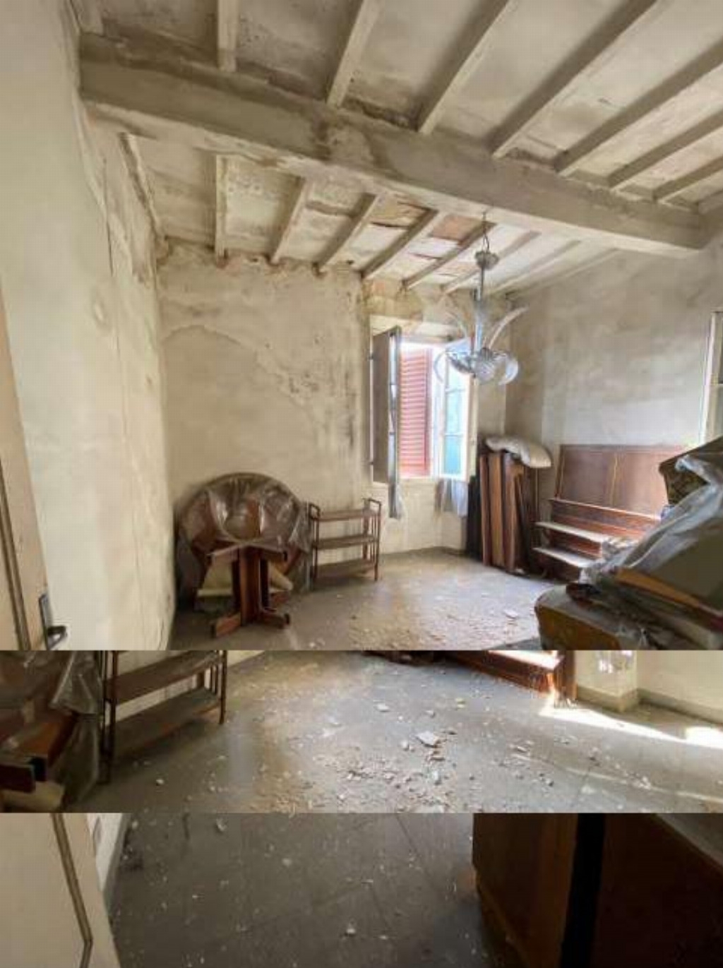 Rif: ar appartamento di civile abitazione sito in montevarchi (ar), via roma n.193, in posizione centralissima, all'interno del centro storico, con accesso diretto dal corso principale (via roma), posto al terzo piano di un fabbricato articolato su quattro piani fuori terra, . L'appartamento ha una superficie utile complessiva di mq 61,40 distribuita su tre vani contigui e versa in stato di abbandono e inagibilità con lesioni e infiltrazioni che interessano quasi tutte le pareti.