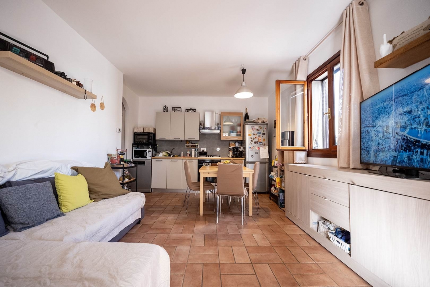 Campi bisenzio, zona semi-centrale, in contesto prettamente residenziale, tranquillo e silenzioso, e al tempo stesso vicino a tutti i principali servzi, si propone in vendita grazioso bilocale indipendente di 54mq catastali oltre resede esclusivo e posto auto, sito al piano terra di un piccolo fabbricato trifamiliare senza alcuna spesa di condominio. L'immobile, libero su due lati, è dotato di entrata indipendente dal suddetto resede anteriore: un'area piastrellata di circa 40mq ove poter mangiare all'aperto in completa privacy, direttamente collegata al soggiorno. Internamente si compone di una graziosa zona giorno open space con angolo cottura, disimpegno notte, un'ampia camera da letto matrimoniale corredata di pratica cabina armadio e servizio con doccia ad areazione forzata. completa la proprietà un posto auto scoperto di 21mq, sito all'interno dello spazio di manovra a comune con l'unità confinante, custodito da cancello elettrico. L'oggetto, in buonissime condizioni generali, si presta idealmente come acquisto prima casa per giovani coppie, o per persone anziane o con ridotta capacità motoria, vista l'assenza di barriere architettoniche e la presenza dei servizi di prima necessità nelle vicinanze. Ottimo anche come investimento nell'ambito delle locazioni residenziali. Richiesti euro 205.000. Libero in tempi tecnici, vendesi. Classe energetica: g