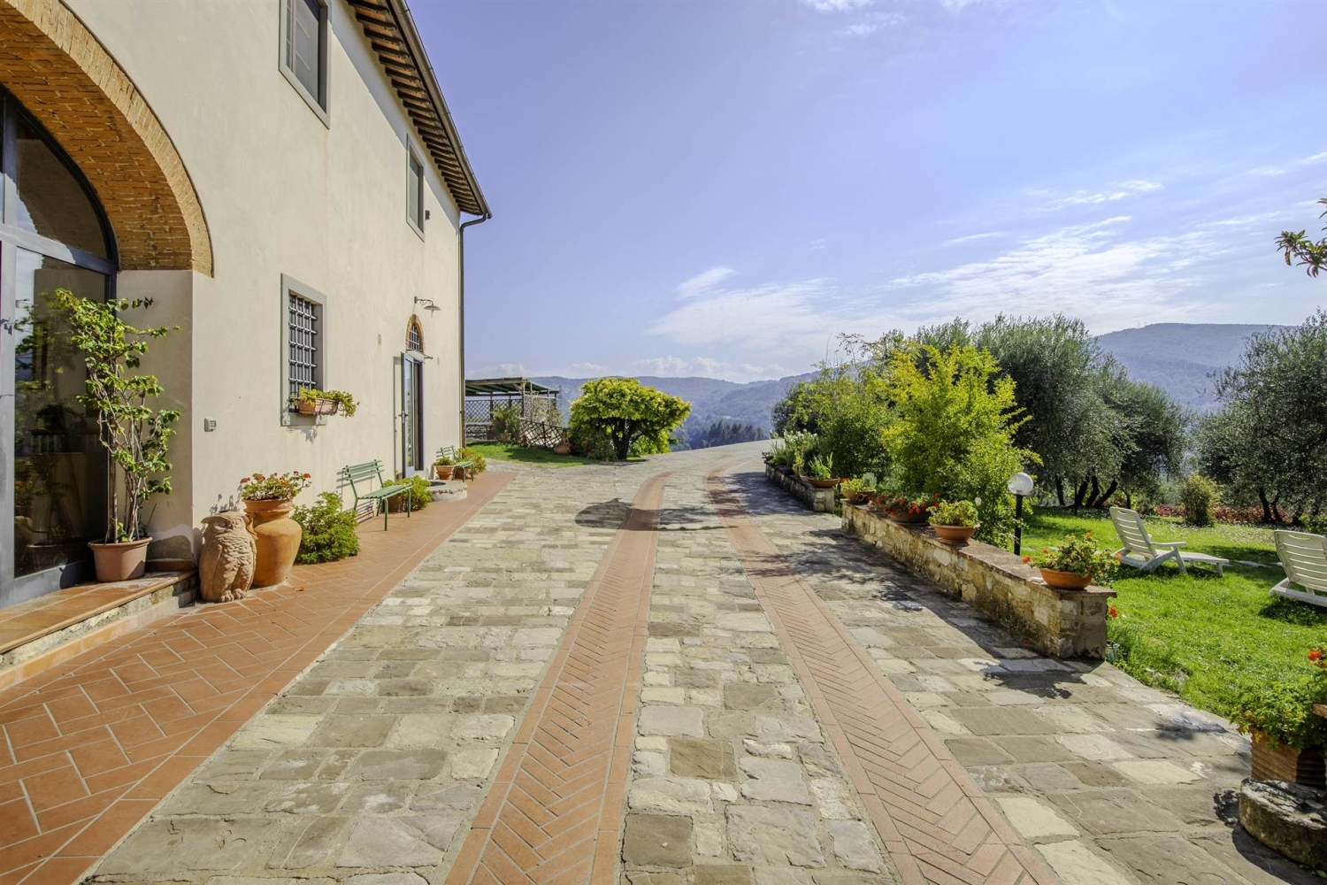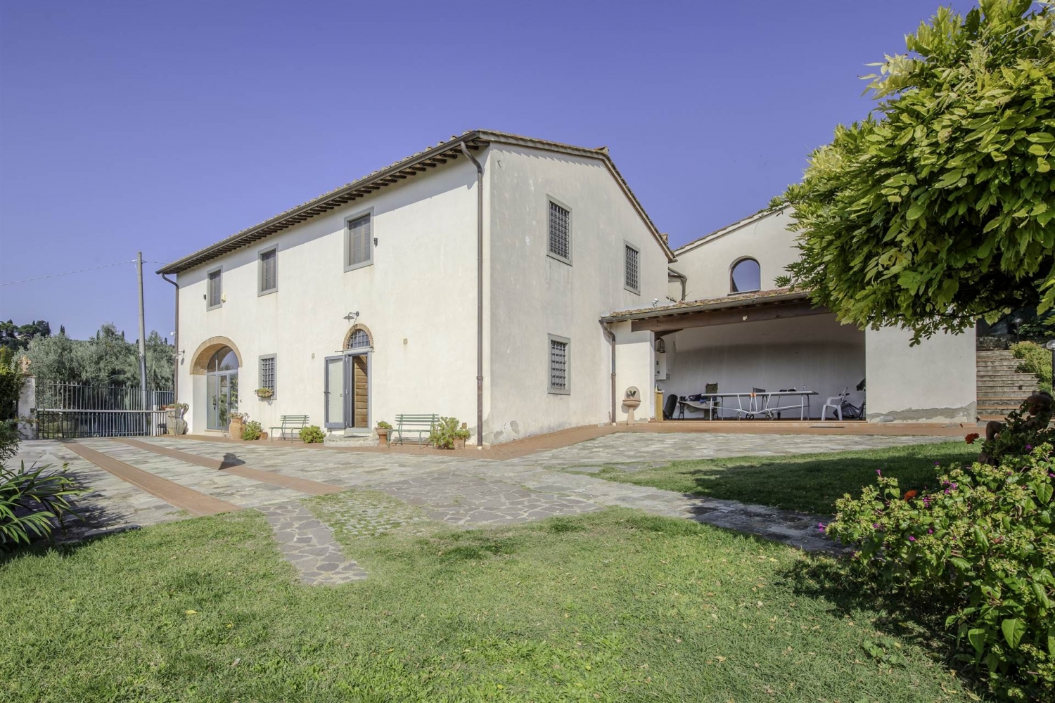 Girone, in posizione panoramica, proponiamo una splendida colonica di circa 300 mq oltre 50 di ex-fienile, attualmente censita come unica unita' immobiliare ma di fatto divisa in due appartamenti indipendenti oltre ampio giardino su quattro lati e 5.000 mq di uliveto completamente recintato. Alla proprieta' si accede da un cancello carrabile esclusivo e comprende anche una cantina e locali ad uso magazzino. Le due abitazioni sono strutturate a terratetto con zona giorno al piano terreno e zona notte al primo piano. Le condizioni della colonica sono ottime, tranne una parte di circa 50 mq da ristrutturare che potrebbe diventare una terza unita'. classe energetica: g epi: 190 kwh/m2 anno