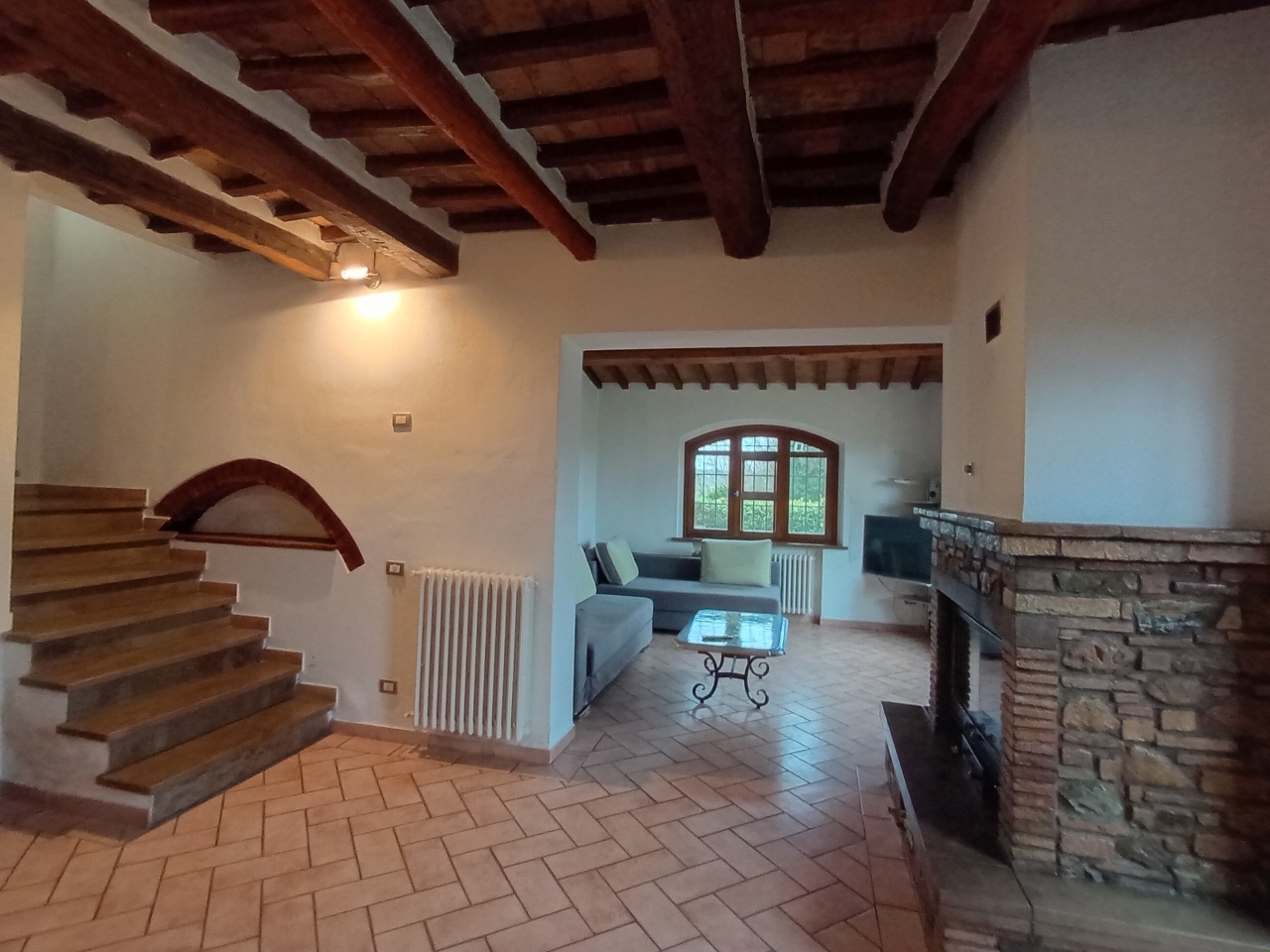 Porzione di casa colonica - terratetto indipendente, libero su tre lati e strutturato su 2 livelli, con ampio giardino di proprietà. L'immobile è stato ristrutturato finemente con materiali di ottimo livello, presenta facciate in pietra e soffitti con travi e mezzane in cotto, tipici delle case di campagna toscane. Piano terra con ingresso, ampio e luminoso soggiorno con bel camino, cucina-pranzo, 2 ripostigli, bagno di servizio; il primo ed ultimo piano dell'edificio è suddiviso in disimpegno, 2 camere da letto ed un bagno con doccia e finestra. L'abitazione dispone di utenze indipendenti, termo camino e stufa a pellet. Giardino di circa 185 mq con posto auto, accessibile da un cancello carrabile ed uno pedonale. Ubicato a 7 km da san gimignano ed a 20 km da volterra, in bella zona di campagna. Ideale come casa per le vacanze o per affitti turistici. En: portion of a farmhouse - independent terraced house, free on three sides and arranged over 2 levels, with a large private garden. The property has been finely renovated with excellent quality materials, featuring stone facades and ceilings with beams and terracotta mezzanines, typical of tuscan country houses. Ground floor with entrance, large and bright living room with a beautiful fireplace, kitchen-dining room, 2 storage rooms, service bathroom; the first and last floor of the building is divided into a hallway, 2 bedrooms, and a bathroom with shower and window. The house has independent utilities, a thermo-fireplace, and a pellet stove. Garden of approximately 185 sqm with parking space, accessible from a driveway gate and a pedestrian gate. Located 7 km from san gimignano and 20 km from volterra, in a beautiful countryside area. Ideal as a holiday home or for tourist rentals. - sc9594976