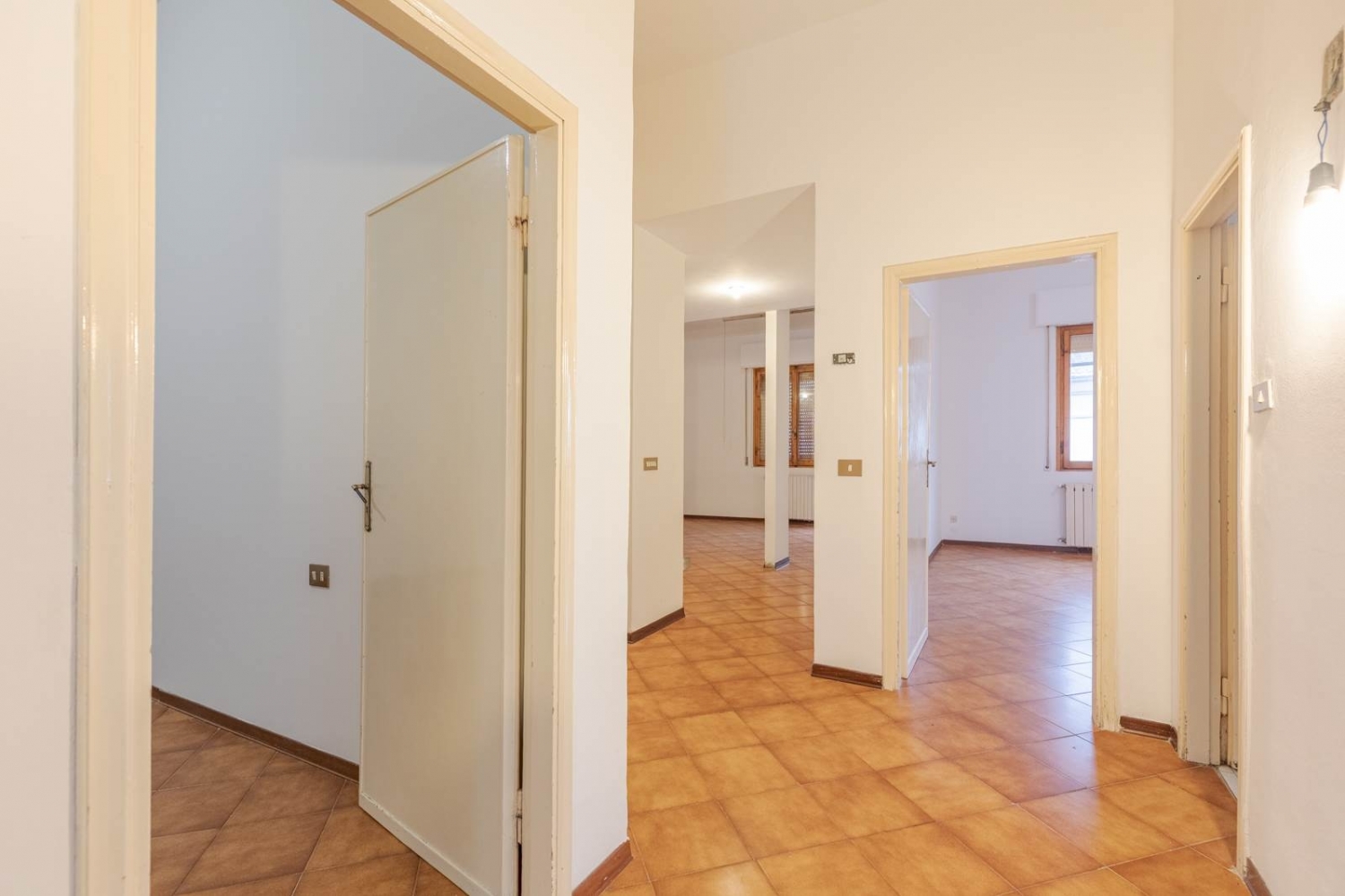 Signa, zona centrale, nelle immediate vicinanze del centro storico e della stazione ferroviaria, in contesto dinamico e ben servito, proponiamo in vendita appartamento quadrivani di 98mq catastali oltre terrazza abitabile, sito al primo piano di una palazzina anni '70, con pochissime spese condominiali. L'appartamento, inserito all'interno di una corte privata, si compone di disimpegno ingresso che disloca i vari ambienti, una cucina abitabile, un'ampia camera da letto matrimoniale, servizio finestrato con doccia, sottoscala/ripostiglio, un ulteriore disimpegno, un grazioso soggiorno con camino e un'altra camera da letto matrimoniale, spaziosa e luminosa. Dal disimpegno si ha accesso infine, tramite scala in legno, ad un pratico soppalco sovrastante la zona giorno, attrezzato per ricavare un'ulteriore camera o un ambiente di lavoro. Fiore all'occhiello della proprietà è senz'altro la terrazza abitabile, di circa 40mq, accessibile sia dal soggiorno che dalla camera matrimoniale, tramite due portafinestre distinte: uno spazio voluminoso, perzialmente coperto da tettoia, ideale per trascorrere momenti di convivialità all'aria aperta, in famiglia o con gli amici. L'oggetto, libero subito, risulta parzialmente da rimodernare, ma comunque abitabile. Sebbene necessiti di interventi, vanta un potenziale non indifferente: vi è, ad esempio, la possibilità di utilizzare la cucina come una terza camera da letto effettiva, sfruttando l'ampiezza del soggiorno per spostarvi gli allacci, creando di fatto un accogliente open space con angolo cottura, in linea con gli standard moderni. Possibilita' di acquistare, a parte, anche un pratico garage di 16mq, staccato rispetto al fabbricato, ubicato al piano terra all'interno della corte privata. La richiesta, per il singolo appartamento, è di 240.000eu.. Libero subito, vendesi. classe energetica: g