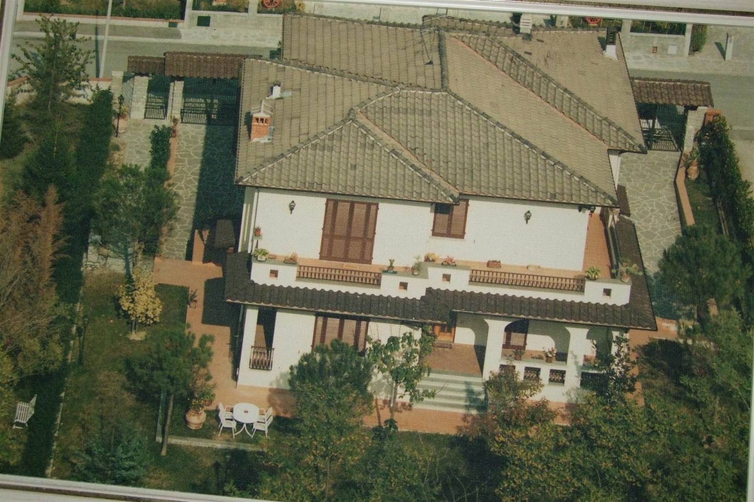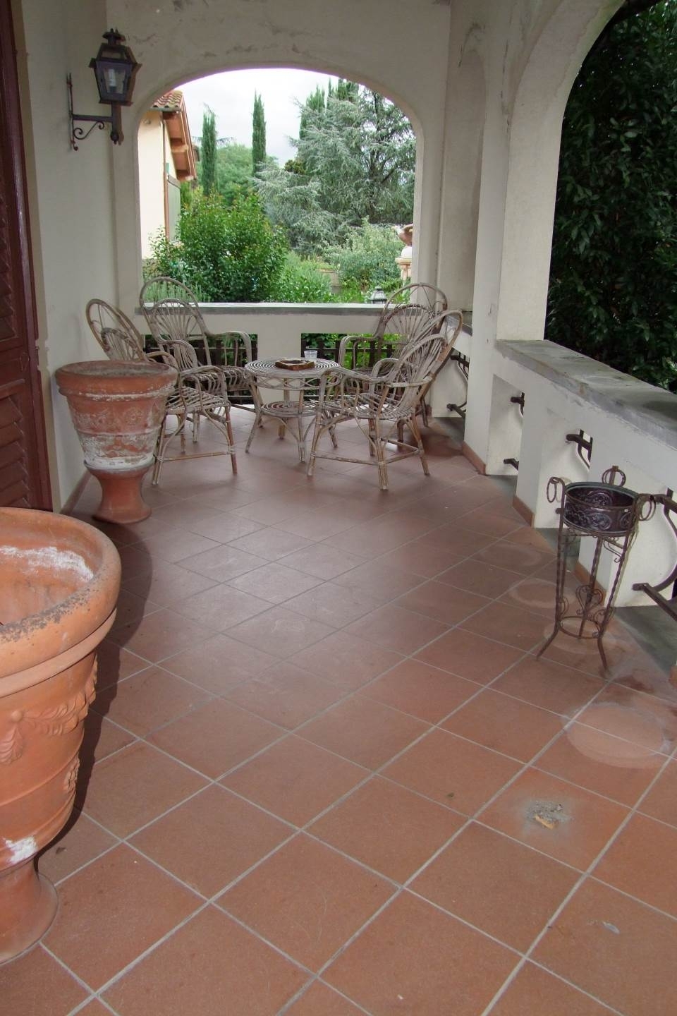 Porzione di villa libera su tre lati, su tre livelli di mq 240 con giardino di 300 mq su due lati.l'immobile è composto nel seminterrato da doppio garage, cantina e una taverna con cucina e camino ed un ripostiglio. Al pian terreno ampio soggiorno con camino e terrazza, angolo cottura con sala da pranzo direttamente su grande loggia esterna, un ripostiglio e una camera matrimoniale con terrazzo, infine un bagno finestrato con doccia. Al primo piano si trovano due camere matrimoniali che si affacciano su un grande terrazzo e un'altra camera matrimoniale con guardaroba, una cameretta con terrazzo. Due bagni finestrati uno con vasca ed uno con doccia. Completa la proprietà centrale termica di mq 14. Classe energetica: g epi: 250 kwh/m2 anno