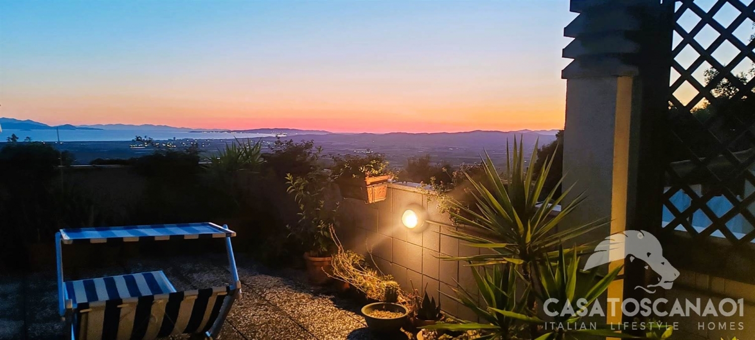 Affascinante appartamento in zona panoramica con vista mare. L'immobile è posizionato al piano primo con ingresso indipendente, giardino al piano e terrazza solarium sul tetto che può essere utilizzato anche per cene e all'aperto con amici e parenti. All'interno troviamo soggiorno con angolo cottura, ampia terrazza chiusa e condonata con vista panoramica utilizzata come soggiorno, camera matrimoniale, camera singola, bagno. Al piano terra troviamo grande garage di oltre 36 mq. Con ripostiglio e possibilità di bagno. La casa è in ottime condizioni di manutenzione. Non perdete questa occasione unica sia come residenza primaria che per appoggio per le vacanze. classe energetica: g