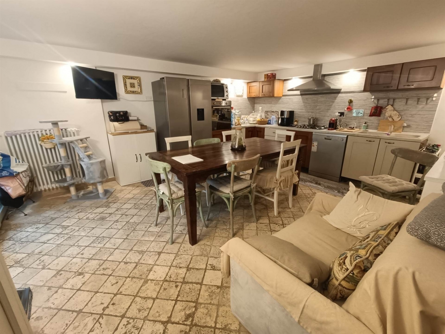 In zona residenziale tranquilla e molto elegante, vicina a tutti i principali servizi, in edificio a schiera, proponiamo in vendita appartamento trilocale con ingresso indipendente, corte di ingresso esclusiva e garage. l'appartamento, della superficie di 75 mq, è posto al piano terra rialzato ed ha accesso pedonale dalla corte esclusiva a mezzo scala esterna. e' composto da terrazzino d'ingresso, grande soggiorno con angolo cottura con accesso a comodo balcone, disimpegno giorno notte, camera matrimoniale, camera singola e bagno finestrato con cabina doccia. dal soggiorno, tramite comoda ed elegante scala interna, si raggiunge il locale autorimessa di 33 mq, posto al piano terra: questo ambiente, attualmente adibito a taverna con cucina soggiorno open space e ripostiglio, ha l'uscita sulla corte esclusiva piastrellata e con tettoia. la proprietà si presenta in ottime condizioni d'uso, con rifiniture di gran pregio, una casa dotata di tutti i comfort per il massimo benessere abitativo. impianto di riscaldamento autonomo a metano e predisposizione per la climatizzazione. infissi esterni anta ribalta a doppio vetro e portone blindato, zanzariere.per il balcone è già stato acquistato il materiale per realizzarne la chiusura con infissi in alluminio e vetro, mentre per il sottoscale della corte esclusiva è stato acquistato il materiale per realizzare la chiusura per creare un comodo ripostiglio.una proprietà che risulta essere un vero e proprio gioiellino.classe energetica (ape): e.mettiamo a disposizione i seguenti servizi: studio tecnico per attestato prestazione energetica (ape) - accesso atti catastali - relazione tecnica di conformità urbanistica e catastale, broker finanziario per mutui e/o finanziamenti, studi notarili per rogito di compravendita definitivo. per info e visite riccardo painiconsulente immobiliare english version:in a quiet and elegant residential area, close to all major amenities, in a terraced building, we offer for sale a three-room apartment with a private entrance, a private courtyard, and a garage.the 75 sq m apartment is located on the raised ground floor and has pedestrian access from the private courtyard via an external staircase.it comprises an entrance terrace, a large living room with kitchenette and access to a comfortable balcony, a hallway, a double bedroom, a single bedroom, and a bathroom with a window and walk-in shower.from the living room, a comfortable and elegant internal staircase leads to the 33 sq m garage on the ground floor. This space, currently used as a basement with an open-plan kitchen/living room and storage room, opens onto the private tiled courtyard with a covered patio.the property is in excellent condition, with high-quality finishes, a home equipped with all the comforts for maximum living comfort.independent natural gas heating and provision for air conditioning.double-glazed tilt-and-turn windows and a reinforced door, along with mosquito nets.the material for the balcony's aluminum and glass enclosure has already been purchased, while the space under the stairs in the private courtyard has been equipped with the necessary enclosure to create a convenient storage room.this property is truly a gem.energy class (epc): e.we offer the following services: technical study for energy performance certificate (epc) - access to land registry documents - technical report on urban planning and cadastral compliance, financial broker for mortgages and/or loans, and notary services for final sales deeds.for information and viewings, contact riccardo painireal estate consultant Classe energetica: e