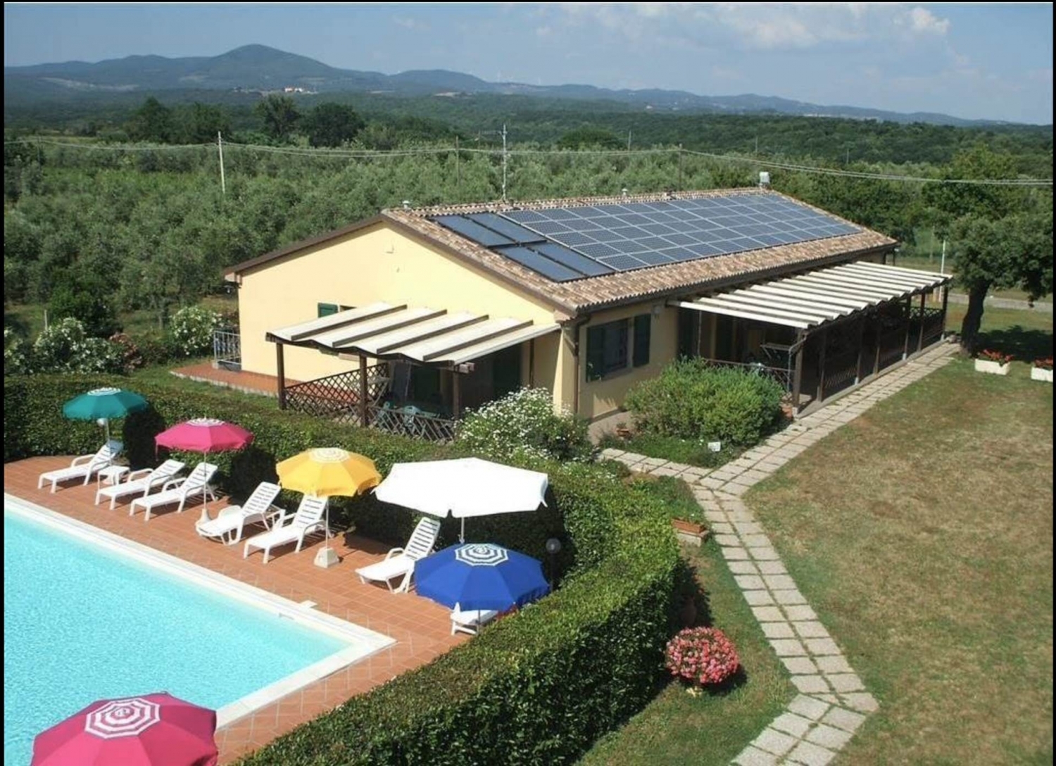 Cecina meravigliosa proprieta con piscina, terreno a oliveto, vigneto, parco giochi e campo di calcio. A 7 km dalla spiaggia e a 5 km dal centro di cecina, a pochi minuti di auto dal bolgheri, castiglioncello, bibbona e con vista mare, in aperta campagna, agevolmente raggiungibile, vendesi azienda agricola agrituristica. La struttura agrituristica (350 mq) si compone di 6 appartamenti (5 bilocali e 1 trilocale) e 2 camere con bagno., costruiti 10 anni fa tutti con ingresso indipendente dal pergolato coperto. L'azienda comprende villa padronale bifamiliare in perfetto stato di 214 mq e servizi, oltre magazzino di mq 64; casa di 270 mq con 4 appartamenti (locati con contratti ad uso abitativo); cantina di 60 mq; frantoio aziendale di 55 mq con deposito olio; annesso agricolo (130 mq) e tettoia di recente costruzione (70 mq); locale lavanderia e servizio, locale tecnico; un pollaio , un pozzo ed un acquedotto comunale. Il terreno di 13,5 ha, si divide in ampio parco circostante i fabbricati, con piscina, vasca idromassaggi, parco giochi, campo di calcetto, area griglia e forno a legna; parcheggio; 0,76 ha con vigneto (nello specifico vitigni trebbiamo, vermentino, sangiovese, merlot e cabernet sauvignon) , 2,5 ha con ulivi (600 piante), 6,5 ha seminativi ed il resto bosco. Produzione di vino ed olio extravergine d'oliva con frantoio aziendale, dove viene confezionato e venduto direttamente. Nella vendita è compresa l'attrezzatura necessaria per le varie culture e lavorazioni oltre due trattori. Sono presenti pannelli termici per acqua calda, caldaia a legna, pompe di calore con impianto fotovoltaico 10 kw nominale classe energetica: f epi: 200 kwh/m2 anno . Info ns. Uffici la prestige immobiliare , leader sul mercato da oltre dieci anni, si caratterizza per l'alta professionalità e per le serietà con la quale svolge continuativamente il suo lavoro. Prestige immobiliare è un'agenzia multidisciplinare, all'interno della quale il cliente trova uno studio di architettura, un conto vendita di arredo di interni, un corner assicurativo , un corner bancario, un corner legale e un point per la voltura delle utenze .prestige tratta non solo immobili a livello locale ma anche nazionale ed internazionale di alto prestigio e gode della sinergia dei colleghi affiliati in federazione italiana agenti immobiliari della quale la titolare è vicepresidente del collegio provinciale . classe energetica: f epi: 200 kwh/m2 anno