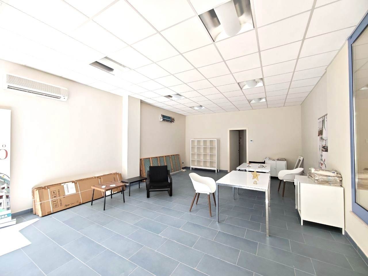 A 150 metri dall'isola pedonale, in zona di notevole passaggio pedonale ed automobilistico, al piano terra di palazzo signorile di recente edificazione, affittasi locale commerciale della superficie di mq 59. Il locale, immediatamente disponibile, è composto da un grande vano con tre vetrine, disimpegno, ripostiglio e bagno. Impianto di climatizzazione (caldo/freddo) indipendente. Completa la consistenza un posto auto coperto ubicato nel locale autorimessa condominiale. richieste garanzie. Classe energetica: d epi: 139,16 kwh/m3 anno