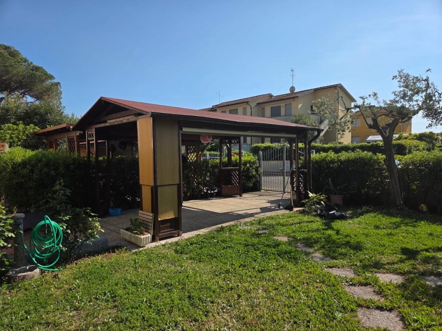 Rif: mazz mau 218 - vada 'la mazzanta' in villetta appartamento a 350 mt dal mare con terrazza e grandissimo parco oltre 250 mqcon casina in legno e barbecue; garage al piano terra con cucina e bagno direttamente collegato al giardino,al piano primo soggiorno con spazio cottura e terrazza, 2 camere e un bagno- arredato ben tenuto internamente eesternamente-posto auto coperto-