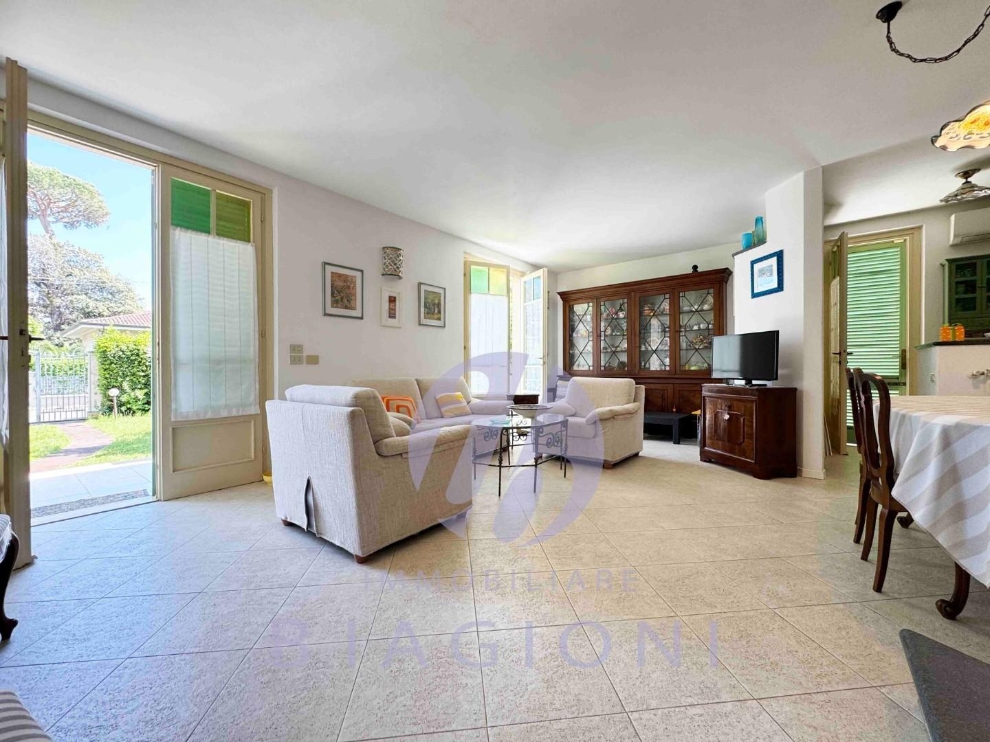 Rif: marina di pietrasanta a soli 200 mt dal mare, vendesi ottima porzione di bifamiliare sviluppata su 2 livelli ; piano terra e mansarda ( alta ) . Al piano terra rilazato troviamo ingresso su zona giorno con affaccio su ampia terrazza con tenda elettrica , cucinotto con affaccio su terrazza laterale dove poter mangiare , disimpegno , 1 camera matrimoniale e bagno . Al piano primo 2 ampie camere matrimoniali ogniuna con proprio bagno e 1 cameretta con altro bagno . Ampio giardino su tre lati con posti auto interni .