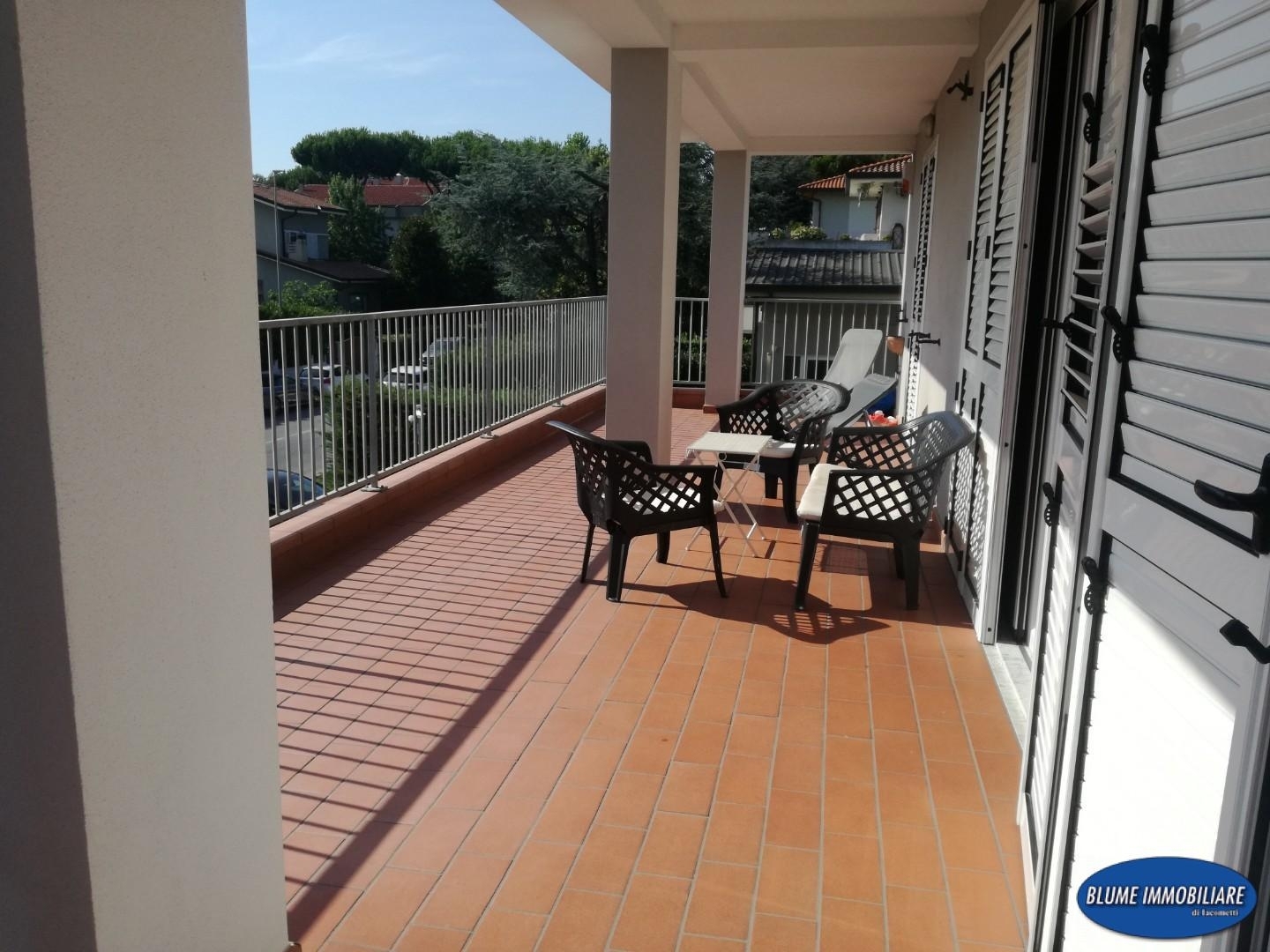 Rif: v2 - viareggio - quartiere don bosco in bella zona residenziale, alle spalle di città giardino, quindi a pochi passi dalla pineta e a dieci minuti dal mare, comodo anche per chi viene da fuori, nessun problema di parcheggio libero, affittasi periodo estivo con contratto casa-vacanze, appartamento in villa di nuova costruzione, posto al piano primo, no ascensore, posto bici nella resede a comune, corredato di ampie terrazze sia sul lato mare che sul lato monti oltre a due balconi. L'arredamento è nuovo, come pure gli elettrodomestici e il corredo: lavatrice, lavastoviglie, forno, frigo con freezer, piatti, bicchieri, posate e tv ecc... esclusa la biancheria. si compone: soggiorno/pranzo con cucina a vista (cucina completa di lavastoviglie) accesso da due porte finestre alla terrazza lato mare che gira sui due lati dell'appartamento, disimpegno notte, una camera matrimoniale, una camera doppia che può diventare matrimoniale all'occorrenza, due camere singole con balconi e due bagni con doccia e finestra, altra terrazza lato monti. Ogni vano accede alle due terrazze e i due bagni hanno balconi di servizio con lavatrice e stendibiancheria. I posti letto in totale sono sei. L'appartamento è dotato, come per legge, di estintore a schiuma e di rilevatore di fumi con relativo allarma e di codice cin per l'identificazione delle unità immobiliari ad uso abitativo destinate a locazione turistica.richiesta mese di giugno €. 1.850, mese di luglio €. 3.900, mese di settembre €. 1.850. Le utenze sono calcolate in via forfettaria in €. 250 mensili, pulizie finali €. 100, manutenzione estintore €.50. Deposito cauzionale infruttifero €. 500.rif. 2940v2agenzia blume immobiliare di iacometti antonella tel
