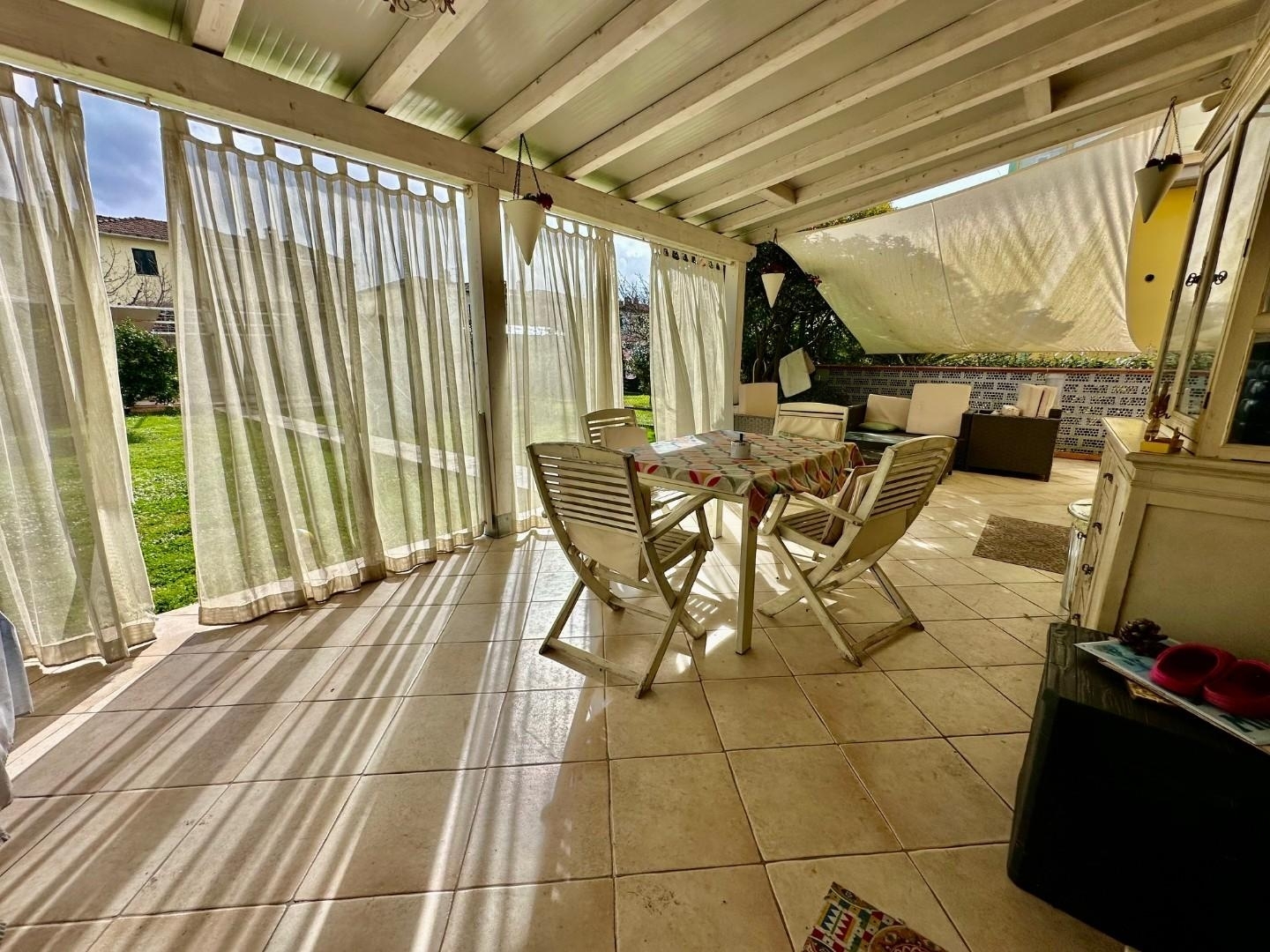 Rif: carrara - vicinanze stadio (rif. 500431) appartamento indipendente con giardino - in ottimo stato ideale per chi cerca una soluzione abitativa con uno spazio esterno godibile, si propone la vendita di questo appartamento con ingresso indipendente posto al piano terra di piccola palazzina composta da sole 8 unità abitativa. la casa internamente ha una metratura di circa 85 mq cosù distribuita: ingresso, soggiorno, cucinotto, disimpegno, due comode camere, bagno e ripostiglio. Dall'abitazione si accede sul retro dove si trova una bellissima veranda attrezzata per godersi cene e momenti di relx in famiglia o con amici, un bel giardino e una comoda cantina ad uso shombero.le condizioni interne sono ottime e i comfort non mancano (infissi doppio vetro, portone blindato, climatizzatore, zanzariere, armadi su misura...) . Il tutto rende questo immobile perfetto per chi sta cercando una soluzione pronta per essere abitata. la palazzina è piccola, tutta recintata e in ottimo stato. Le spese condominiali ammontano ad appena € 30 al mese.'molto carina - da non perdere!!!'.