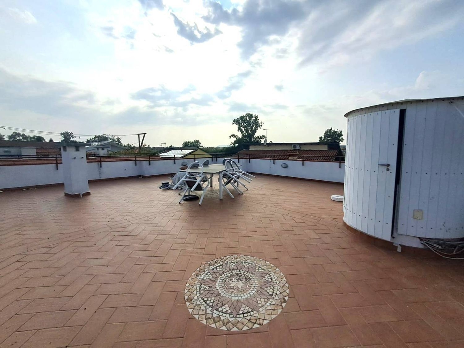 Rif: marina di massa, vicinanze viale roma a circa 1.600 m dal mare e dalle spiagge di ronchi, si vende appartamento posto al primo piano con grande terrazza solarium!posto al piano primo ed ultimo di piccola palazzina, è composto da ingresso, ampia sala con cucina a vista e accesso al balcone, disimpegno notte, due camere da letto e bagno con doccia e finestra.dal balcone tramite scala a chiocciola si accede a grande terrazza solarium, di circa 75 mq, con vista sulle apuane!