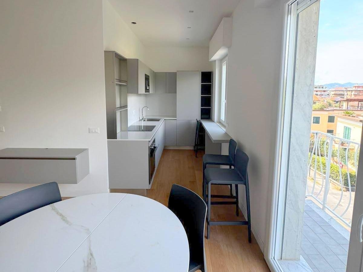 Rif: ronchi centro, posizione imperdibile a ridosso del lungomare, con tutti i servizi sotto casa, si vende spazioso appartamento con vista apuane.posto al secondo piano (ultimo piano) di palazzina con facciate appena rifatte, è composto da ingresso su soggiorno con bellissima vista sulle alpi apuane, balcone, cucina a vista, disimpegno notte, due ampie camere da letto matrimoniali, una con pratico balcone, e due bagni con doccia (uno dotato di finestra). l'appartamento è stato oggetto di completa e radicale ristrutturazione, ultimata nei primi mesi del 2025, con impiantistica e finitura di elevata qualità e comfort:, riscaldamento e raffrescamento con pompe di calore aria-acqua (migliore efficienza energetica) alimentate esclusivamente ad energia elettrica, riscaldamento con impianto a pavimento (pavimento in vero parquet) e raffrescamento ad aria con bocchettoni a parete e macchine nel controsoffitto, per una massima eleganza e piacevolezza architettonica. Infissi taglio termico in pvc con tapparelle motorizzate, per il massimo della comodità.la casa in pronta consegna, è ceduta completamente arredata come mostrato in foto*, rendendola una soluzione immediatamente pronta per essere utilizzata, senza pensieri.posto auto disponibile in affitto in area condominiale.*nb: alcune immagini presentano interventi di virtual styling: abbiamo aggiunto elementi di decoro e complementi d'arredo digitali per valorizzare l'accoglienza degli ambienti e suggerirti come rendere l'atmosfera calda e rifinita