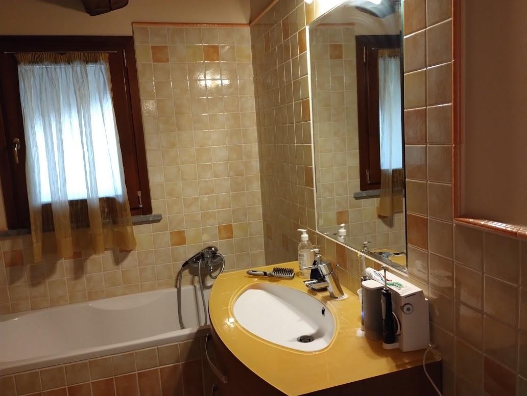 Rif: villino singolo a orentano - proponiamo questa bella villetta bifamiliare ma praticamente indipendente sia per disposizione sia per gli affacci posizionata in contesto rinnovato e tranquillo alle porte del paese di orentano, completamente ristrutturata nel 2011. La villetta si compone al suo interno da ingresso su zona pranzo e ampia sala con porta finestra, con soffitto con travi a vista di castagno, travicelli e mezzane, e da un piccolo disimpegno si può accedere alla ampia e luminosa cucina con ampia porta finestra che da accesso anch'essa al giardino esterno. Sempre attraverso il disimpegno si accede alla camera da letto/studio con cabina armadio del piano terra e al bagno di servizio con doccia. Salendo dalla zona giorno attraverso altro piccolo disimpegno e una scala con gradini in pietra di cardoso, si accede al piano primo della zona notte con pavimenti in parquet di legno massello, dove troviamo una camera matrimoniale e una cameretta attraverso la quale si accede ad un balcone coperto molto utile e completamente chiuso, e un ulteriore bagno con vasca. Completano l'immobile inoltre gli spazi esterni con un ampio giardino ben tenuto da poter vivere per cene all'aperto in estate, accesso carrabile con cancello e ricovero auto offerto da un carport in legno attraverso il quale si accede anche ad una ulteriore zona ad uso rimessa attrezzi completamente chiusa sempre da bella tettoia in legno e pvc. L'immobile si presente in ottime condizioni e con ottime rifiniture, quali porte in legno laccate, finestre in legno massello, zanzariere a tutte le finestre, inferiate, travi a vista di castagno e gres di ottima qualità al piano terra, spazi generosi e ben distribuiti mantenendo tutti gli aspetti caratteristici architettonici e costruttivi del tipico casolare toscano. Sono presenti tutti gli allacci quali metano, acqua del comune, fognatura in tricamerale. Ottima soluzione abitativa per famiglie in ottimo contesto tranquillo vicino ad altre abitazioni ma al contempo lontano dalla strada principale. rif. 41