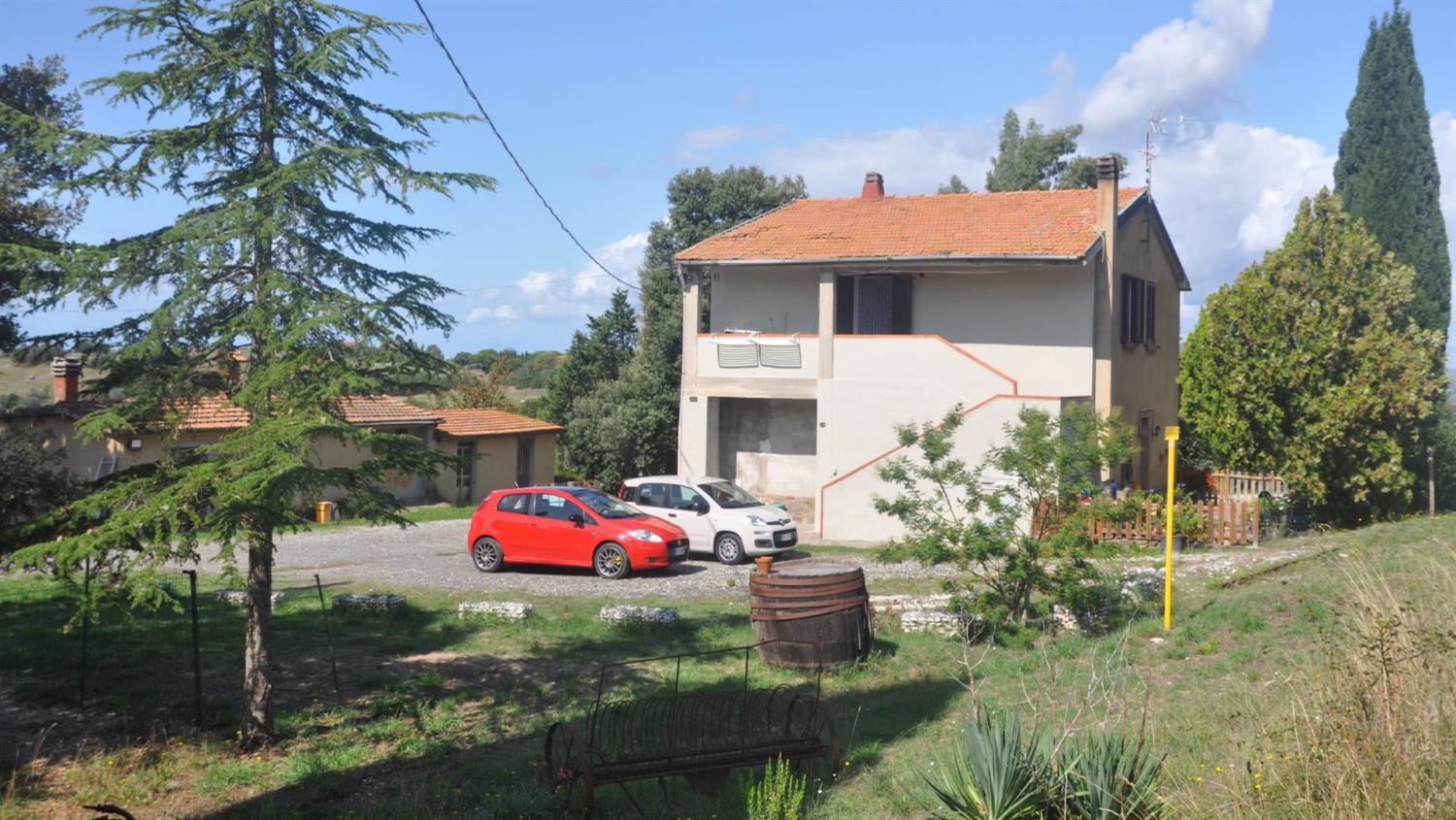 Pomarance, 35 km dal mare, con ampio panorama, vendesi podere con casa colonica di 180 mq composta da due appartamenti indipendenti, ciascuno con ingresso, soggiorno, cucina pranzo, due camere e bagno. Fabbricato di 200 mq con cantina, magazzino, laboratorio, garage, ripostiglio e forno. Terreno: circa 4,5 ha, ampia corte con laghetto, vigneto, ulivi e seminativo. Classe energetica: g epi: 300 kwh/m2 anno