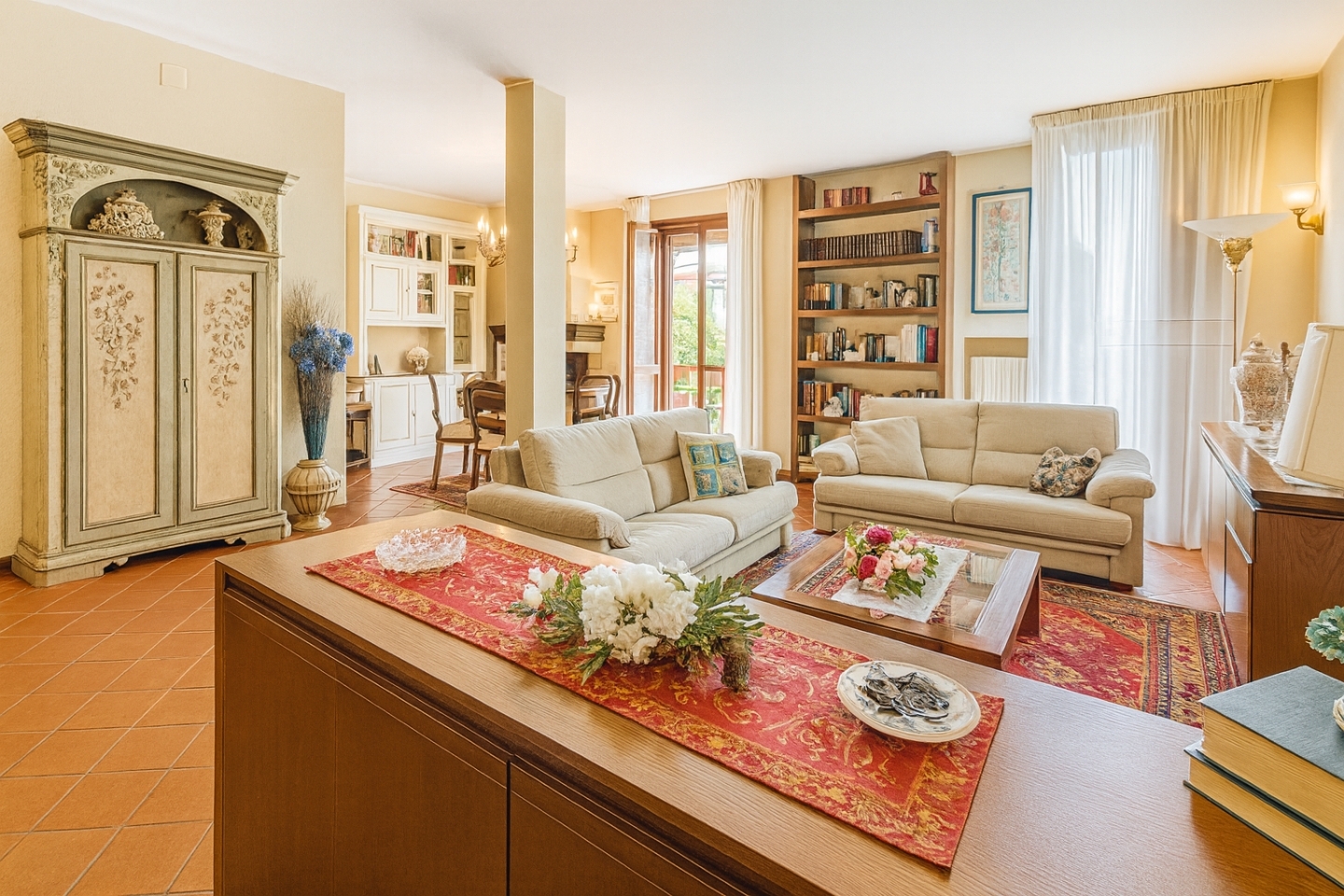 Rif.ag. Se128 - pontedera oltrera **dimora di luce e armonia** baciata dal sole e avvolta da unaura di serenità, questa elegante bifamiliare si presenta come un rifugio di bellezza e calore. Le sue finiture pregiate parquet e cotto impruneta raccontano la cura e lamore di una famiglia che lha abitata con dedizione, rendendola una casa vissuta e amata. Appena varcata la soglia, si percepisce unatmosfera magica: la luce danza tra gli ambienti, accarezzando ogni dettaglio. Un giardino fiorito la circonda su tre lati, aperto a est, sud e ovest, cosù che il sole la accompagni dallalba al tramonto in ogni stagione. Qui, tra vialetti e spazi attrezzati, si immaginano conviviali serate estive sotto le stelle. Il cuore della casa è un ampio salone, luogo di incontri e sorrisi, impreziosito da un caminetto che scalda lanima. Accanto, la cucina abitabile invita a momenti di intimità e semplicità. Sullo stesso piano, un bagno di servizio e una lavanderia con accesso diretto al giardino completano la comodità quotidiana. Al piano superiore, quattro camere due matrimoniali, una doppia e una singola/studio offrono spazi di quiete e sogni. Il bagno principale e due balconi architettonici aggiungono eleganza e respiro. La mansarda, completamente praticabile, si apre su una terrazza solarium di 16 metri, un luogo sospeso tra cielo e terra, ideale per contemplare il tramonto. Il piano seminterrato custodisce un garage capace di accogliere due vetture e una taverna conviviale con caminetto, perfetta per serate dinverno. Le scale, ampie e armoniose, collegano ogni livello con naturale fluidità. A protezione della casa, un impianto di pompaggio e un generatore garantiscono sicurezza e continuità. Questa dimora non è solo una casa, ma un luogo dove la luce incontra la vita, dove ogni spazio racconta storie di calore e bellezza. **richiesta: ? 375.000, trattabili.** - sc9509691