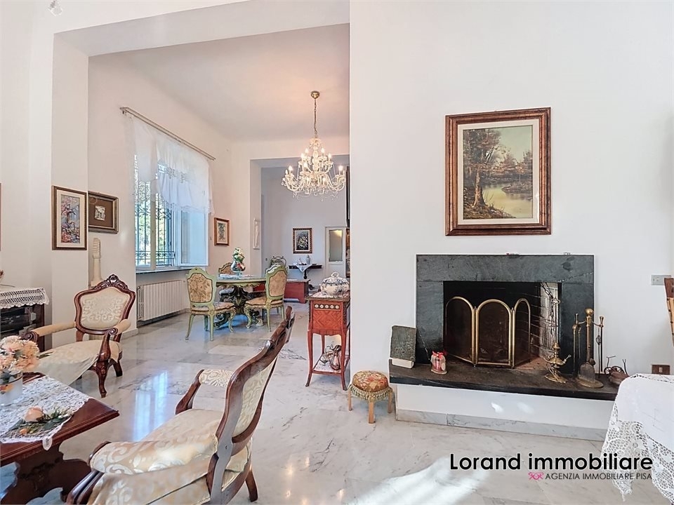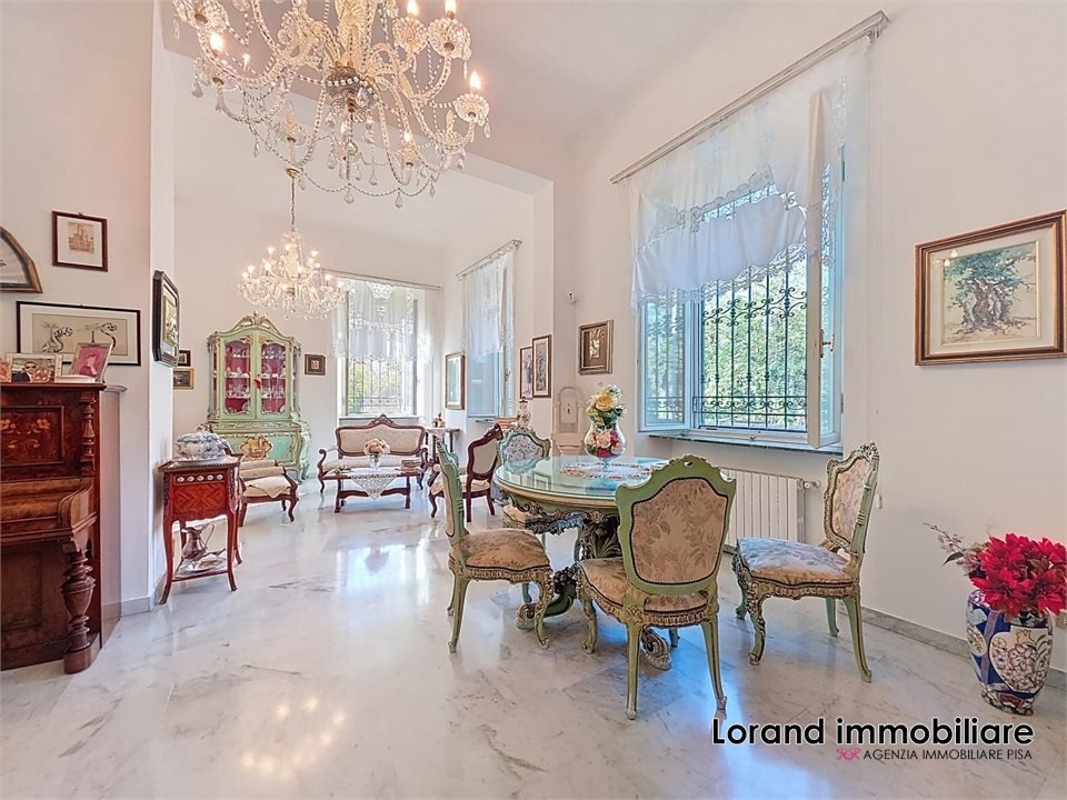 San giuliano terme. Appartamento su unico livello in villa d'epoca in stile liberty, completamente ristrutturata.nla zona giorno si apre su un elegante ingresso con accesso diretto a un ampio salone triplo con camino, caratterizzato da straordinaria luminosità, e a una spaziosa cucina abitabile separata.nla zona notte ospita quattro grandi camere matrimoniali, un comodo ripostiglio e tre bagni, di cui due finestrati.ndalla zona notte si accede direttamente al piano seminterrato, dove si sviluppa un'area taverna suddivisa in un ampio salone in stile rustico con colonne e volte sabbiate, oltre a due locali polifunzionali, un ripostiglio e un bagno.nla proprietà è completata da un bellissimo giardino, perfetto per momenti di relax e convivialità, e da comodi posti auto con accesso tramite cancello carrabile. Euro 495.00 rif. V990n - maggiori dettagli: cantina, camino, climatizzato, cucina abitabile, porta blindata, ripostiglio, sistema di allarme, taverna