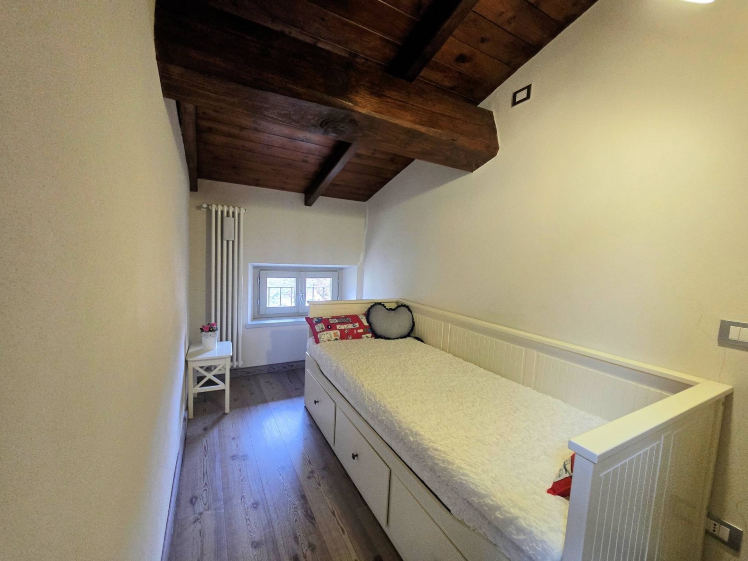 Proponiamo un appartamento mansardato di circa 80 mq con accesso in comune con un altro appartamento posto all'interno di un palazzo signorile nel centro di cutigliano.si compone di soggiorno con angolo cottura, camera matrimoniale, camerina/guardaroba, doppi servizi. L'appartamento è stato ristrutturato completamente diversi anni fa per il miglioramento delle caratteristiche architettoniche, strutturali ed igienico sanitarie con buone finiture, pavimenti in larice, bagni in ceramica mosaico, scala in pietra serena locale. predisposizione per termo stufa a pellet, 4 grandi lucernari, isolamento termico in pannelli di sughero, infissi moderni, impianto termico autonomo alimentato a gpl, posto auto privato ad uso esclusivo.
