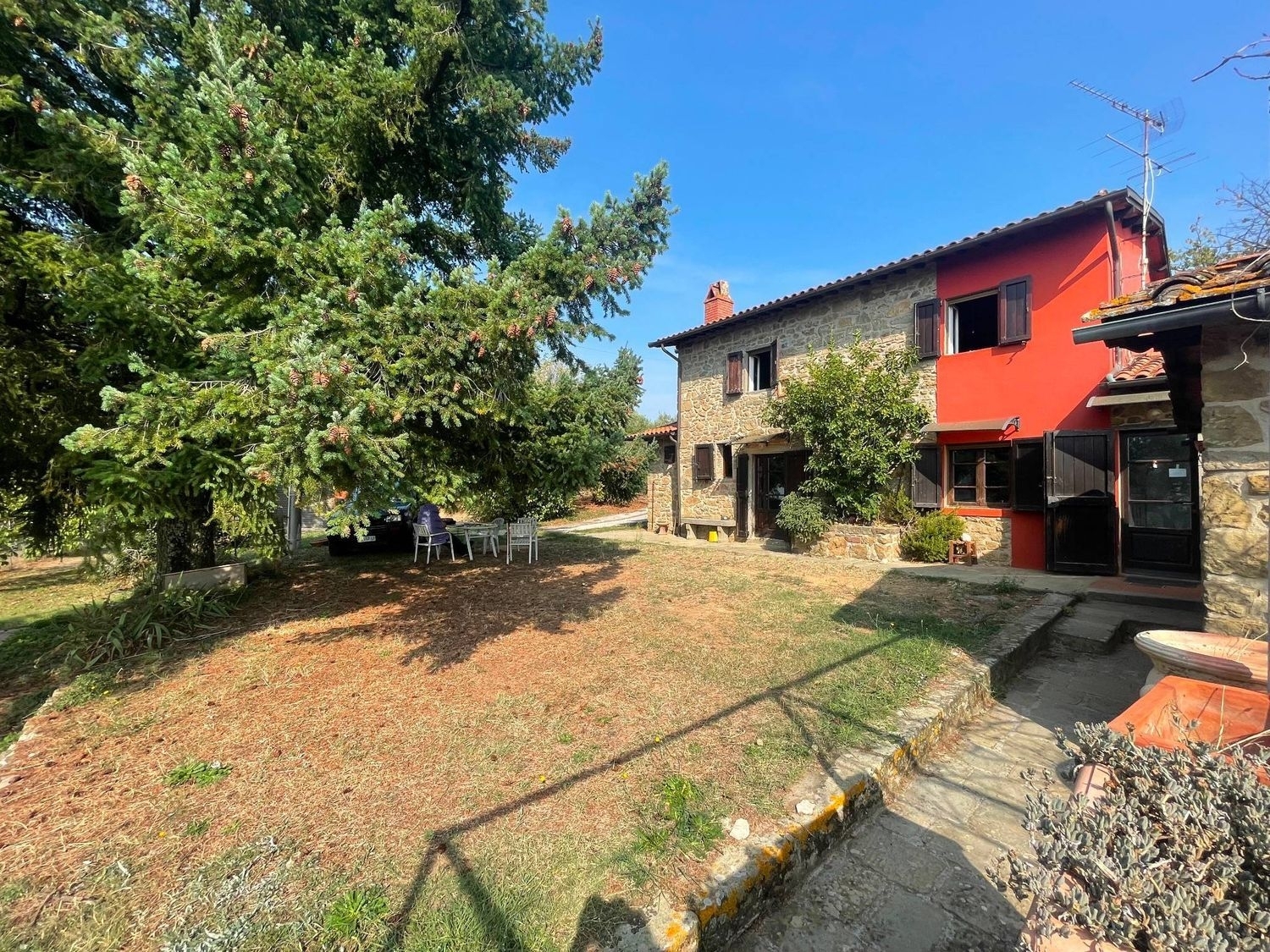 Rif: ek immersa nel verde, poco sopra il paese medievale di uzzano castello, proponiamo casale corredato da ampio podere pianeggiante con affaccio su una splendida vista su tutta la vallata sottostante. esternamente ed internamente la casa, che si trova in ottime condizioni, è caratterizzata dalle classiche rifiniture costruttive toscane: rifiniture con pietra a faccia vista, solai e tetto con travi in legno e mezzane a vista, classico tetto a coppi ed embrici e uno splendido pavimento in cotto. internamente è composta al piano terreno da ampia zona giorno con doppio caminetto e un forno a legna, sala da pranzo, cucina e locale tecnico; salendo al primo piano da scale in pietra, troviamo tre camera matrimoniali, uno studio/cameretta e un bagno con doccia.all'esterno troviamo una cantina indipendente rifinita in pietra, con patio pavimentato, perfetto per momenti conviviali con amici e familiari, godendo di una splendida vista. correda l'esterno ampio garage doppio finestrato con delizioso portico e fonte di acqua sorgiva. l'immobile, completamente indipendente, ha l'accesso da strada asfaltata principale.la proprietà è composta da ampio giardino pianeggiante circostante, ampio uliveto e una piccola porzione di bosco, per un totale di circa 18'000 mq complessivi.per qualsiasi informazione non esitate a contattarci e fissare un appuntamento.