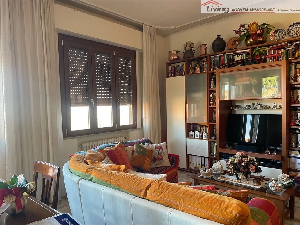 La ripa appartamento al piano primo ed ultimo in villetta bifamiliare, composto di ampio ingresso cucina ampia abitale con terrazzo spazioso, zona living ampia con accesso a terrazzo spazioso, due camere matrimoniali e due bagni finestrati. L'appartamento è molto luminoso e gode di bellissimi affacci sulla campagna. Sono stati fatti importanti lavori di ammodernamento ma qualcosa è da rivedere. L'appartamento è in buonissime condizioni. Ha un giardino privato al piano terreno, un orto, un garage di mq. 30 e una cantina. E' in zona riservata. In attesa di certificazione energetica. Richiesta € 290.000,00 tratt. Rif. V 870