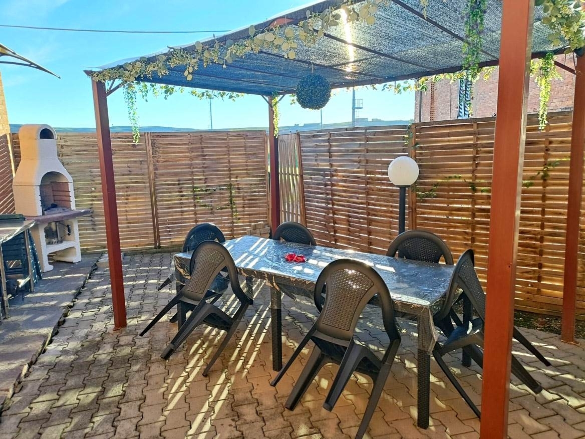 In castelnuovo scalo bel terratetto indipendente libero sui 3 lati migliori di 90 mq luminoso ed in ottime condizioni con 2 resedi privati pavimentati per totali 70 mq. La casa è molto ben esposta alla luce solare e si arriva comodomente posteggiando molto vicino nei posti auto privati. Ingresso al piano terra tramite una bella zona pavimentata privata, soggiorno, cucina pranzo con altra zona esterna ideale per cene estive e bagno; al primo piano abbiamo 2 camere grandi entrambe con terrazzino ed il bagno; grande cantina al piano interrato a cui si accede direttamente dall'interno. L'abitazione può essere venduta anche con gran parte dei mobili presenti all'interno ed ha un ottimo impianto di aria condizionata e pompa di calore con 3 split, ideale per tutte le stagioni. Le condizioni della casa sono tali da non richiedere nel breve tempo la necessità di nessuna manutenzione, la costruzione è recente. classe energetica: d