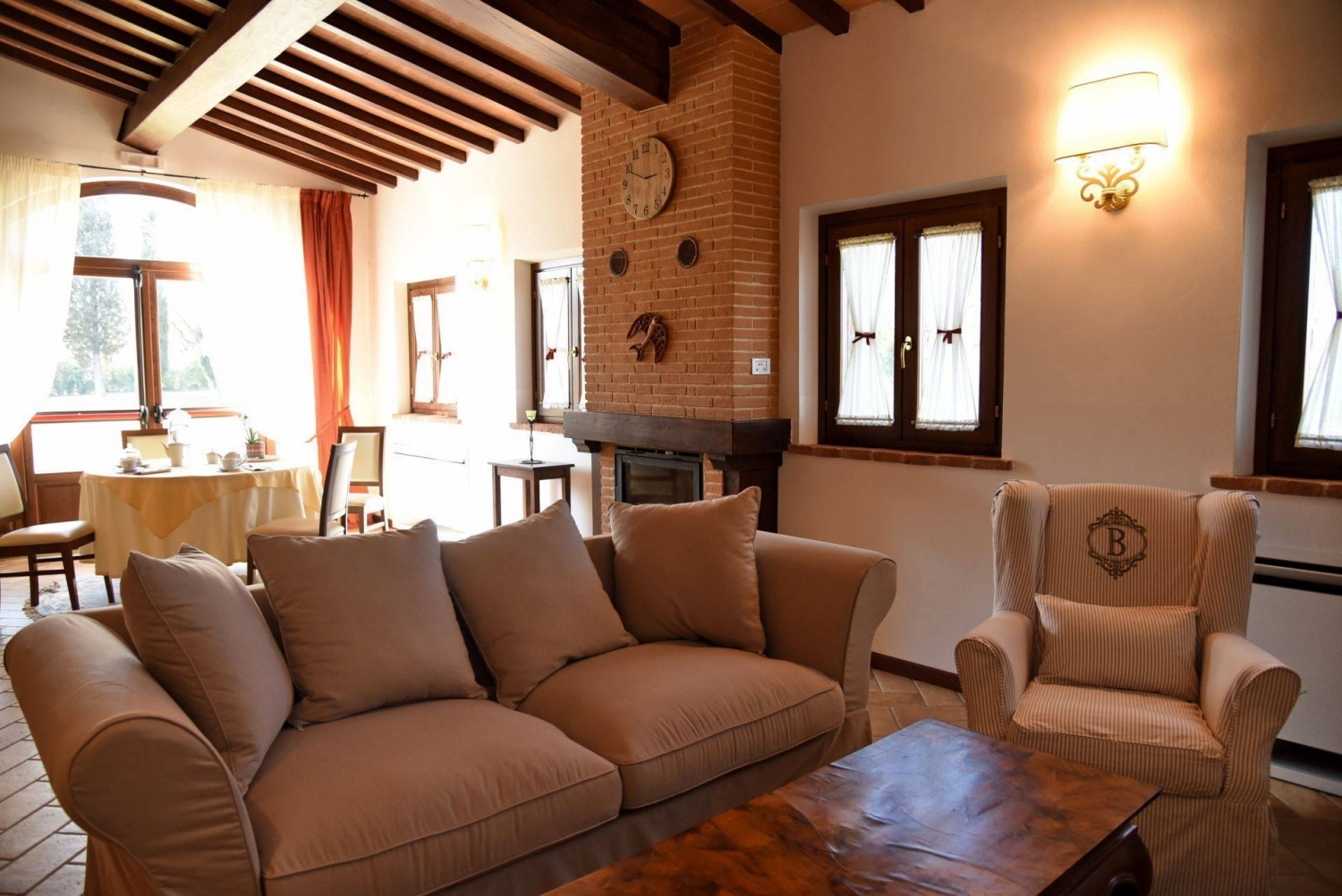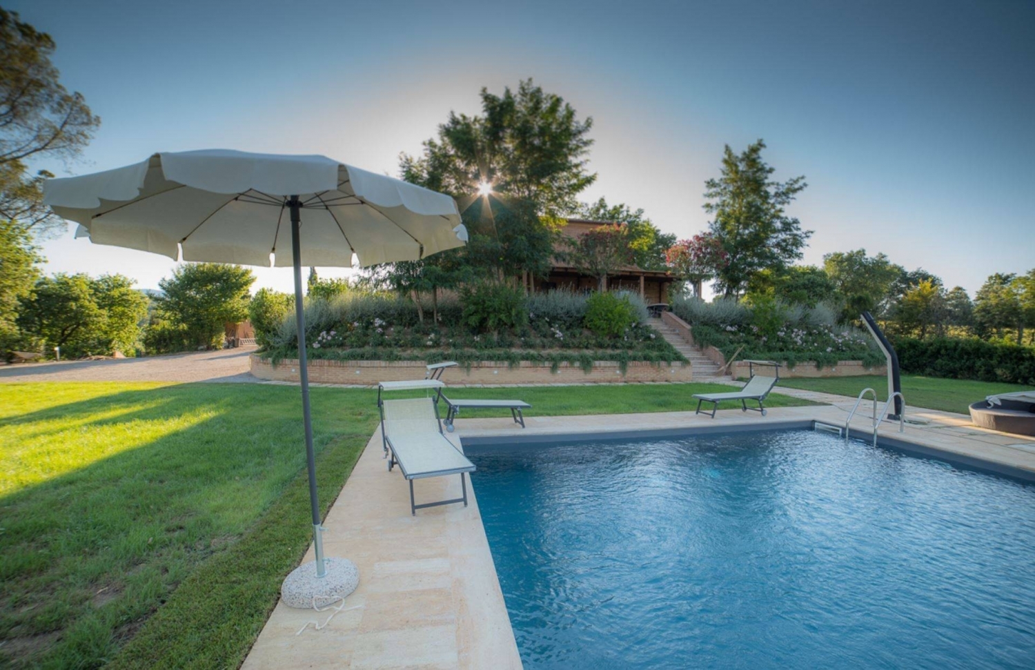Per motivi di privacy, l'indirizzo e il puntatore nella mappa sono puramente indicativi e non corrispondono esattamente all'ubicazione della proprietà, a richiesta daremo tutte le informazioni necessarie.siamo a chiusi scalo a pochi chilometri dalla val d'orcia, proponiamo la vendita di questa bellissima proprietà in posizione dominante e panoramica composta da un parco ad uso esclusivo di circa 6,5 ettari di terreno con varie coltivazioni. il corpo principale del casale è di circa 450 mq. ; dispone di 4 camere molto ampie ed ottimamente rifinite in stile toscano classico ma di prestigio una delle camere è una suite che dispone di un bagno privato con doccia dotata di cromoterapia e con un eventuale letto aggiuntivo. ci sono poi due camere matrimoniali molto ampie ed eleganti dotate di bagno privato doccia king size e cromoterapia. è, inoltre, disponibile una camera doppia, che all'occorrenza può essere matrimoniale, sempre con bagno privato doccia king size e cromoterapia. la struttura dispone, inoltre, di un divano letto in sala che porta la disponibilità totale di posti letto a 11 unità. l'accesso alla sala dove si trova il divano letto è tramite scala esterna. il matrimoniale divano letto 'disposto nel soggiorno in una stanza separata' dispone dei servizi igienici, le docce invece sono situate in un annesso esterno a pochi metri. è disponibile un impianto di filodiffusione in tutti gli ambienti. è disponibile una cucina molto ampia ad attrezzatissima, ad induzione, sia per un utilizzo domestico che professionale. piscina 12x7,50 profondità 1mt e 40. barbecue. in posizione ideale vicino ad alcuni dei principali punti d'interesse di chiusi, come tomba del leone (2,9 km) e catacomba di santa mustiola catacomba di santa caterina (3,1 km). le camere sono dotate di servizi come tv a schermo piatto, minibar e aria condizionata.il casale viene venduto completamente arredato con mobilio di alto livello fatto su misura.