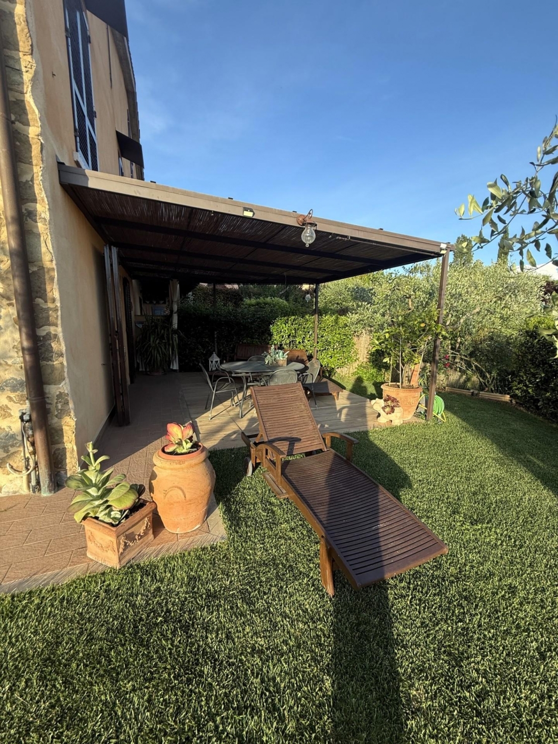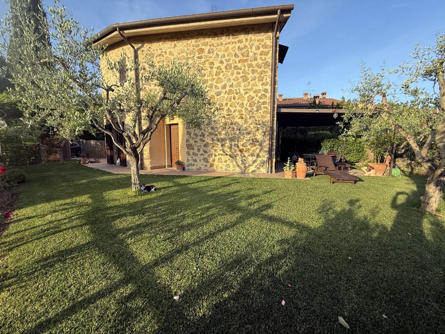 Rif: vil-163 - immerso nel verde del comune di monteriggioni, vendesi villetta di circa 190mq (totali) in posizione di testa dove garantisce luminosità e vista aperta sulla campagna della montagnola senese.entrando, si viene accolti da un ampio e luminoso soggiorno con una grande vetrata che guarda sul giardino privato, una cucina abitabile e ben organizzata e un primo bagno.salendo al piano primo su una bellissima scala in granito pregiato troviamo due camere matrimoniali, una cameretta e il secondo bagno.al piano seminterrato, sempre con accesso da una scala interna a legno locale garage/zona lavanderia di circa 64mq.circonda la proprietà un giardino privato con spazio gazebo.impianto irrigazione _ zanzariere _ infissi vetro/legno _ metano di città _ acquedotto comunale _ addolcitoreleggermente staccato dall'abitazione piccolo appezzamento di terreno(spese condominiali circa 50 euro al mese)classe energetica e