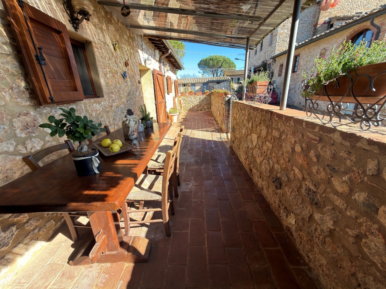 Nel cuore della splendida campagna senese, a pochi km da siena nord e dal centro città-, proponiamo, in nostra esclusiva, la vendita di questa splendida capanna completamente restaurata. La proprietà- si inserisce in un piccolo complesso agricolo, dall'ampia veranda privata di circa 25 mq accediamo all'immobile, entrando si apre uno stupendo soggiorno con caminetto che à il cuore pulsante della casa, alla destra del soggiorno, troviamo un bagno ed una camera matrimoniale con cabina armadio, dal lato opposto invece troviamo un'altra camera (attualmente adibita a studio) e il cucinotto dal quale si accede alla parte di giardino pi๠grande e godibile dotato di focolare per splendide grigliate estive e forno a legna. Completa l'offerta una ampia cantina ed un'altro appezzamento di terreno dove troviamo a disposizione due posti auto. oltre alla qualità- della ristrutturazione va messa in evidenza la grande efficienza energetica dovuta ai pannelli solari per l'elettricità-, altri due pannelli per l'acqua, la caldaia a pellet e una pompa di calore caldo/freddo che rendono la casa funzionale a gli standard moderni di efficientamento energetico. Classe energetica: c - ipe: 135.40kwh/mq anno