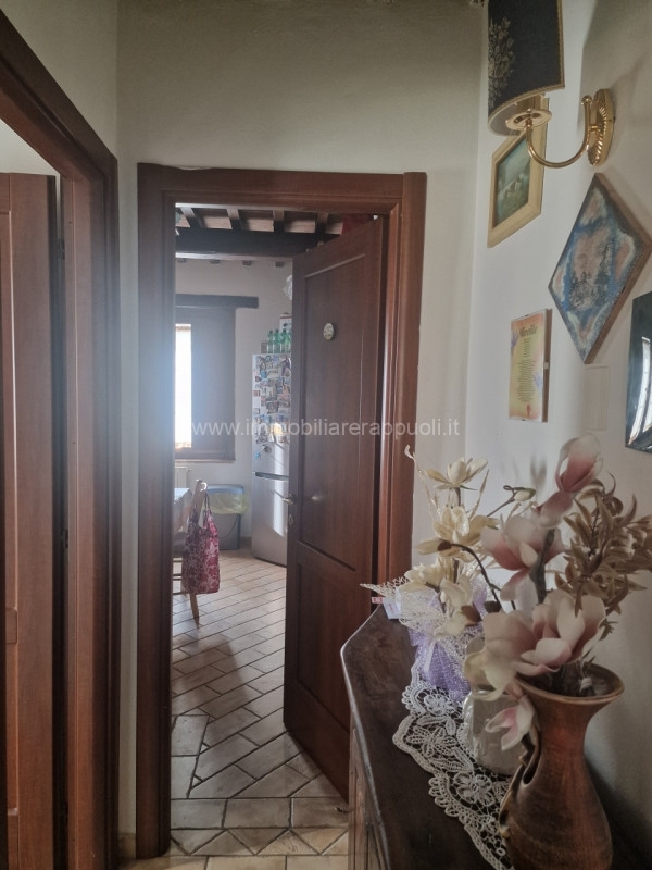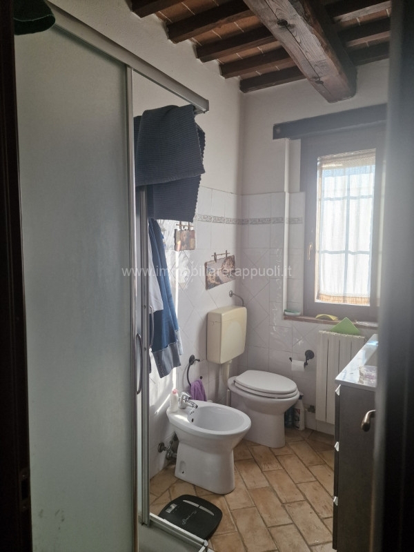 Nel suggestivo borgo collinare di rigomagno, nel comune di sinalunga, proponiamo in vendita una splendida porzione di casa a schiera (porzione di testa) che unisce il fascino rustico toscano al comfort moderno. L'immobile si sviluppa su due livelli per una superficie totale di circa 108 mq ed è impreziosito da dettagli caratteristici come i soffitti con travi in legno a vista e pavimenti in cotto che donano calore e autenticità agli ambienti.al piano terra troviamo un ampio salone luminoso arricchito da arredi classici e grandi finestre che permettono alla luce naturale di illuminare ogni angolo della zona giorno. Da qui si accede direttamente alla cucina abitabile, perfetta per chi ama cucinare e vivere momenti conviviali. Sempre al piano terra è presente un bagno comodo e funzionale.salendo la scala interna dal design elegante si raggiunge la zona notte composta da due camere spaziose ideali sia come matrimoniali che doppie; completa il primo piano un secondo bagno finestrato dotato sia di doccia che bidet oltre ad un pratico ripostiglio.l'abitazione dispone inoltre di uno splendido giardino esclusivo recintato (circa 100 mq).la villetta rappresenta la soluzione ideale sia come prima residenza familiare sia come investimento turistico grazie all'atmosfera autentica dei suoi spazi interni ben distribuiti ed esterni curati nei minimi dettagli.prezzo trattabile! per ricevere ulteriori informazioni o fissare una visita non esitate a contattare l'agenzia immobiliare rappuoli: saremo lieti d'accompagnarvi nella scoperta della vostra nuova casa tra le dolci colline senesi.