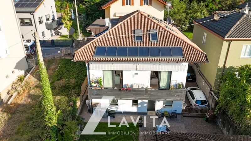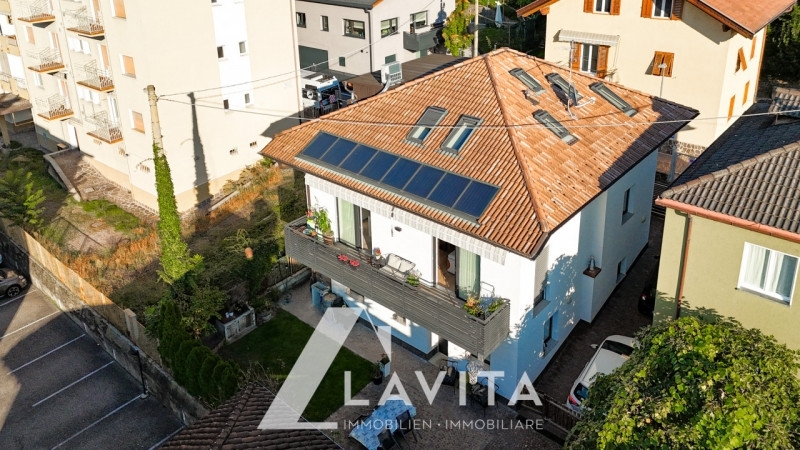 Laives; in posizione tranquilla e ben collegata, proponiamo in vendita una moderna villetta indipendente, composta da due unità abitative autonome, completamente ristrutturata nel 2015. l'immobile si sviluppa su tre livelli. Al piano terra si accede a un primo appartamento bilocale, composto da cucina e soggiorno, una camera matrimoniale, un bagno finestrato con vasca e doccia, e un ripostiglio. al primo piano si accede all'appartamento principale composto da ingresso, un guardaroba, un ampio soggiorno e cucina con accesso diretto alla terrazza esposta a ovest, una camera singola, una lavanderia e un bagno finestrato con doccia. attraverso una scala interna si raggiunge il secondo piano, ed è composto da una camera matrimoniale con cabina armadio e bagno finestrato, completo di vasca e doccia, una seconda camera matrimoniale anch'essa con cabina armadio e bagno con vasca, una terza camera singola e un ulteriore bagno finestrato con doccia. entrambi gli immobili rientrano nella metratura per poter richiedere un contributo provinciale per l'acquisto prima casa.completa l'immobile un giardino attrezzato con doccia esterna, due posti auto e tre cantine multifunzionali finestrate con bagno di servizio. l'immobile è certificato in classe energetica casaclima b ed è stata ristrutturata con un l'elevato standard qualitativo e tecnologico. La ristrutturazione ha incluso l'installazione del cappotto termico, una moderna pompa di calore, riscaldamento a pavimento, aria condizionata canalizzata, infissi in pvc con triplo vetro, tapparelle elettriche, velux automatizzate, termostati indipendenti in ogni ambiente e porte blindate.viene venduto arredato con disponibilitá da concordare!convenzionato: nosuperficie commerciale: 280mqsuperficie calpestabile: 110mq+53mqriscaldamento: autonomo con riscaldamento a pavimento spese condominiali: 0€/meseclasse energetica: casaclima a