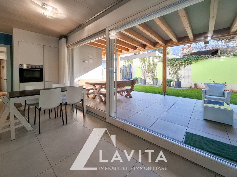 Immobile disponibile da fine 2027via negrelli, con incarico in esclusiva: situato in una posizione tranquilla, in un complesso residenziale di sole 6 unità abitative certificato 'casaclima a-nature' e costruito nel 2017, proponiamo al piano terra questo quadrilocale con 114 mq di giardino privato, di cui 34 mq di porticato coperto.l'appartamento è composto da: ingresso open space con cucina/soggiorno e accesso al giardino esterno tramite una parete vetrata, una camera da letto matrimoniale con accesso al giardino, altre due camere da letto (di cui una con accesso al giardino) e due bagni finestrati.i locali sono dotati di ventilazione meccanica puntuale indipendente per ogni ambiente.inoltre, l'immobile include una cantina e un ampio garage doppio. Sono presenti, inoltre, 3 posti auto condominiali e spazi dedicati al deposito biciclette.l'appartamento viene venduto con disponibilità da fine 2027.convenzionato: sisuperficie commerciale: 109mqsuperficie calpestabile: 76,36mqriscaldamento: centralizzato a pavimento a gasspese condominiali: ca. 120€/mese tutto inclusoclasse energetica: ape: a nature - ipe 40 kwh/m/anno (efficienza involucro) - 10 kg co2/m/anno (efficienza complessiva)