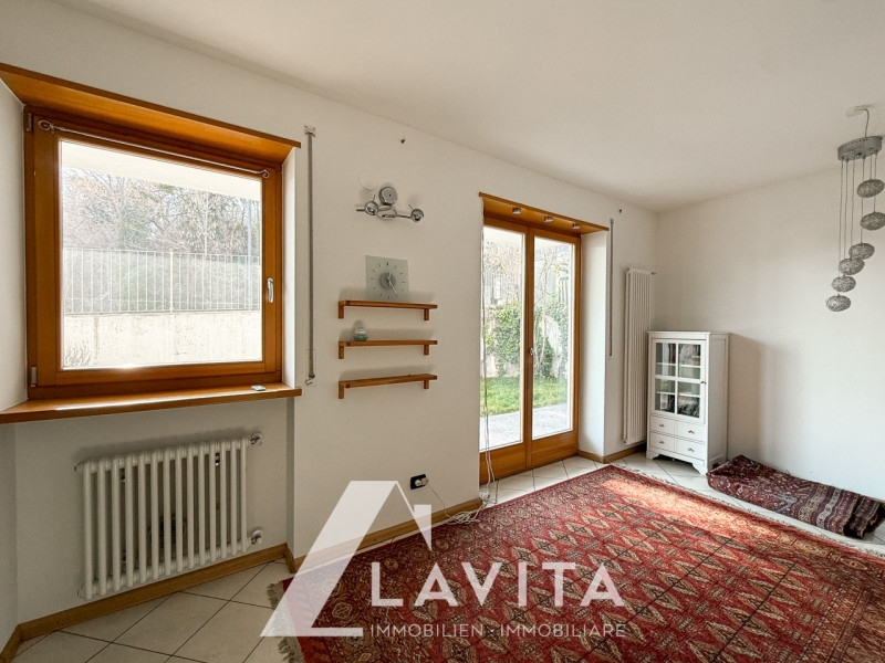 Termeno: in una zona interna del paese, ben collegata e tranquilla di termeno, proponiamo in vendita questo bilocale costruito nel 2008.l'immobile è situato al piano terra di un condominio con ascensore composto da soli 8 appartamenti.l'appartamento è composto da un ingresso, un soggiorno e cucina con accesso direto al spaziso giardino che circonda l'appartamento, una camera da letto e un bagno.completano la proprietà una cantina inclusa nel prezzo. la posizione è centrale e ben servita da tutti i servizi del paese.di fronte al condominio si trova un ampio piazzale con parcheggi pubblici, che consentono di parcheggiare comodamente l'auto.l'immobile è disponibile da subito!convenzionato: nosuperficie commerciale: 53mqsuperficie calpestabile: 40mqriscaldamento: autonomospese condominiali: 100€/meseclasse energetica: d
