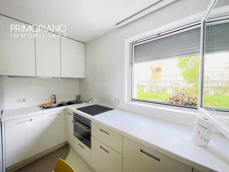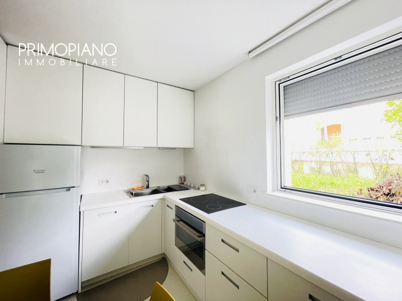A cles proponiamo in vendita appartamento completamente e finemente arredato in palazzina realizzata nel duemilaventidue, con ampio giardino di proprietà di ottantasei metri quadri. L'immobile è composto da ingresso, cucinino, soggiorno/stanza con divano letto, parete attrezzata e accesso al giardino privato, anti bagno e bagno con doccia. Possibilità di accesso diretto all'appartamento con l'ascensore e ingresso indipendente dal giardino. Completano l'immobile il garage di ventuno metri quadri soppalcabile, il posto auto esterno, la cantina, il locale lavanderia e il locale guardaroba. Con facile accesso ai servizi pubblici nelle immediate vicinanze, questo appartamento offre un'opportunità eccellente per godere di uno stile di vita conveniente senza rinunciare alla tranquillità della location. Queste caratteristiche distintive rendono l'immobile perfetto per chi cerca comfort combinato con dettagli moderni. Invitiamo cordialmente gli interessati a contattare la nostra agenzia per organizzare una visita.