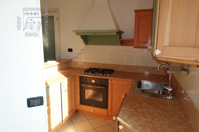 In piccola palazzina di soli 6 appatramenti, piano primo: ingresso, soggiorno con zona cottura, stanza matrimoniale, stanza singola, bagno, ripostiglio e poggiolo. A piano interrato garage molto grande e dotato di soppalco e cantina soppalcata. All'esterno ci sono numerosi posti auto condominiali. L'appartamento viene affittato completo di blocco cucina, bagno, impianto di allarme e climatizzatore. Il riscaldamento è autonomo a metano con termostati divisi per zona giorno e zona notte. si richiedono comprovate referenze lavorative.per informazioni scrivere a