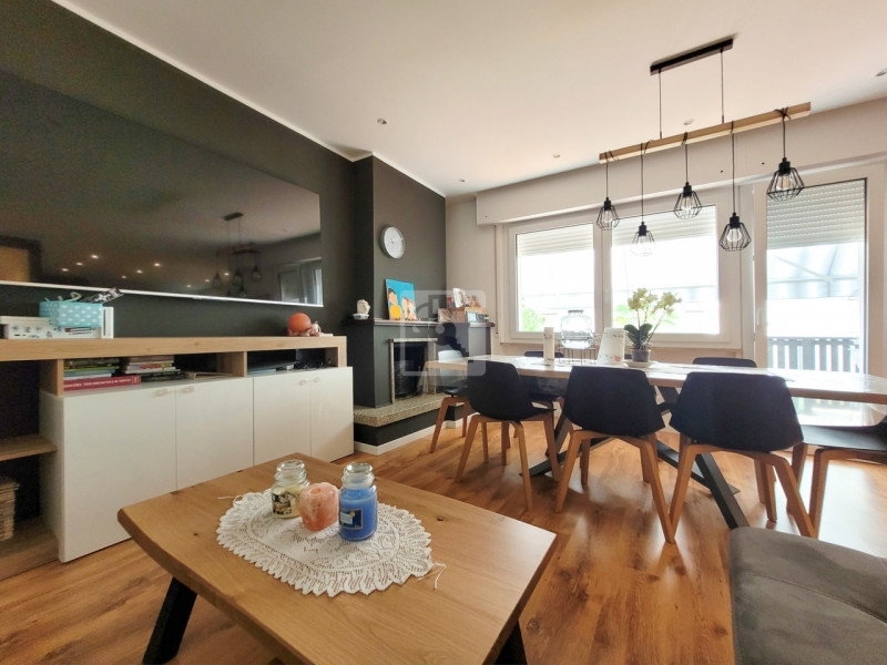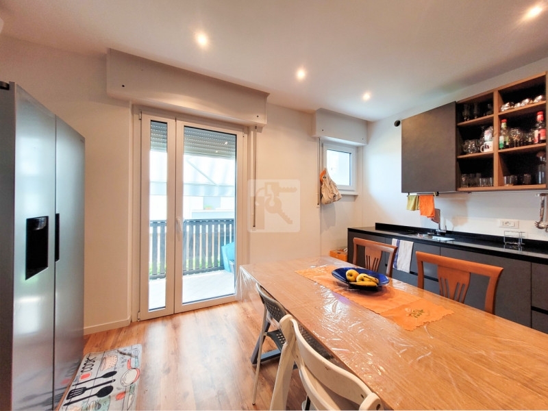 Quadrilocale di 118 mq netti completamente ristrutturato a nuovo, in casa di cinque unità abitative, dove sono appena stati completati i lavori del bonus del 110%. L'appartamento, libero su tre lati, ha un bel terrazzino a lato sud. Gli spazi interni, ben distribuiti, sono l'ideale per una famiglia numerosa: un soggiorno cucina di 44 mq, tre camere da letto matrimoniali e tre bagni. A piano terra stanze pluriuso per una metratura totale di 56 mq. Esternamente due posti auto. -- riscaldamento autonomo a metano, porta blindata, tripli vetri in pvc, videocitofono, aria condizionata, tende da sole.