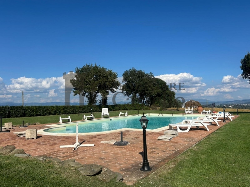 Cr196 circondato da una campagna incontaminata, con vista che spazia sulle colline circostanti, casale il poggio del sole è una dimora storica risalente all'inizio del '900 restaurata con cura un mix tra moderno e lo stile architettonico dell'epoca.la proprietà, si sviluppa su tre piani collegati tra loro tramite un ascensore.al piano terra, un luminoso e ampio salone con caminetto, una sala da pranzo, una cucina funzionale, una camera matrimoniale con bagno privato.il primo piano, con accesso tramite due scale esterne, è formato da soggiorno con camino, due camere da letto, entrambe con bagno en-suite, e un ulteriore camera matrimoniale con bagno con vasca idromassaggio, nella meravigliosa torretta dalla quale si ammira un panorama mozzafiato.al piano seminterrato, due grandi saloni con volte ed archi ed un grande camino padronale, bagno e un ripostiglio, inoltre troviamo un grande garage per la rimessa di macchine, attrezzature da giardino e attrezzature della piscina. il casale è circondato da un grande giardino di circa 5000 mq, dove trova spazio la piscina ad acqua salata 14x7, e una grande terrazza.la proprietà si trova in generale in ottime condizioni manutentive, data anche la ristrutturazione recente. le utenze di acqua e elettricità sono allacciate, riscaldamento gplad oggi la proprietà viene messa a reddito, ma si presta perfettamente residenza fissa o per essere una seconda casa.ubicazione: l'immobile si trova a villastrada, in posizione panoramica e strategica, nel comune di castiglione del lago, a circa 10 km da città della pieve e panicale, comodamente raggiungibile, infatti molto vicine troviamo cittadine e paesi dell'alto lazio e della val di chiana /val d'orcia in toscana come: san casciano dei bagni, cetona, pienza. Si possono raggiungere anche cittadine dell'umbria come cortona, orvieto, assisi e perugia con il suo aeroporto a meno di un 'ora.inoltre castiglione del lago è dotata di una stazione ferroviaria sulla tratta roma-firenze e per snodi più importanti c'è la vicinissima stazione di terontola-cortona oppure quella di chiusi.per ulteriori informazioni o altre soluzioni simili visita il nostro sito o contattaci al numero