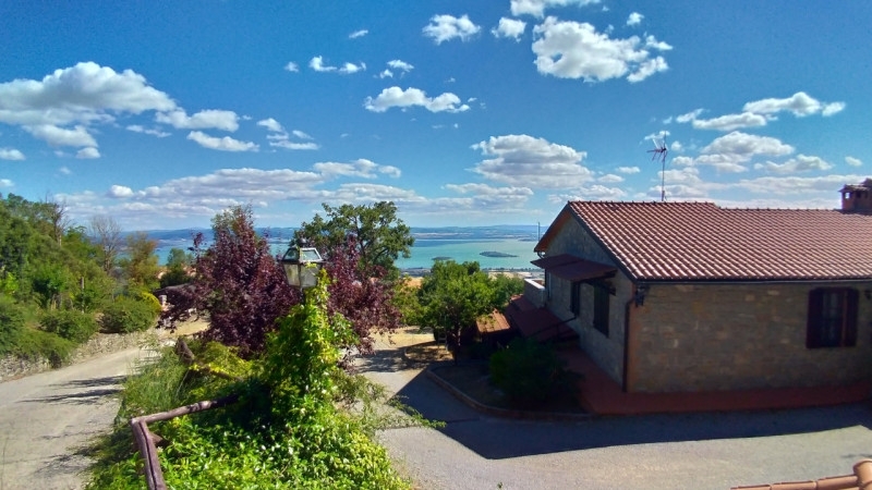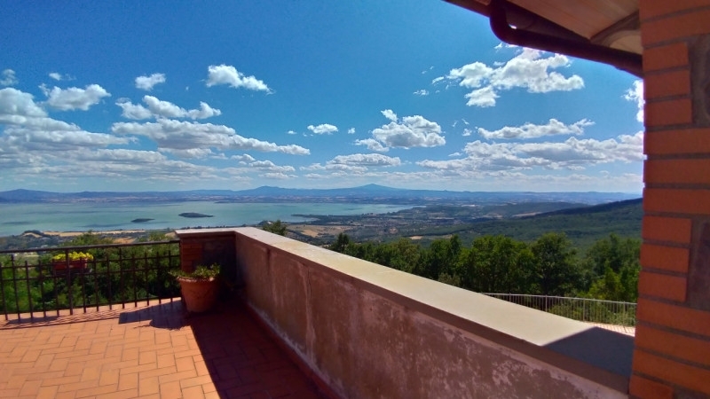 Immerso in un raffinato parco privato di circa 4.000 mq, questo splendido casale domina le colline con una vista panoramica unica sul lago trasimeno e le sue suggestive isole.realizzata negli anni '90 e curata in ogni minimo dettaglio, la proprietà è stata concepita per offrire rappresentanza ed esclusività, ideale per accogliere ospiti di prestigio e gestire relazioni di alto livello in un contesto riservato ed elegante.l'abitazione, di circa 350 mq complessivi, si sviluppa su due livelli armoniosamente collegati. Fin dall'ingresso, lo sguardo viene catturato dalle ampie vetrate, autentici quadri naturali che incorniciano il lago trasformandolo in un elemento d'arredo vivo e in continuo mutamento.il piano superiore (circa 100 mq) accoglie un elegante ingresso che conduce a un luminoso salone, una spaziosa cucina con zona pranzo e un accogliente soggiorno impreziosito da un camino in pietra. La zona notte comprende due camere matrimoniali, di cui una con bagno en suite, oltre a un ulteriore bagno con doccia. Completa il livello una magnifica terrazza panoramica di circa 75 mq, perfetta per momenti di relax o convivialità, sempre con vista lago.dal salone si accede al piano inferiore (circa 180 mq), caratterizzato da ambienti ampi e versatili, distribuiti lungo un comodo corridoio. Qui troviamo una cucina abitabile, una camera matrimoniale con bagno privato, un grande salone con camino, uno studio, due ulteriori camere da letto e un bagno.gli spazi interni si aprono su una splendida terrazza solarium con piscina, da cui godere di una vista impareggiabile sul lago.la proprietà è completata da numerosi comfort e pertinenze: un parco completamente recintato con pozzo, due aree barbecue, due garage in muratura, una tettoia in legno con tavolo in pietra serena e un suggestivo campo da mini-golf.situato in posizione collinare dominante ma facilmente accessibile tramite strada asfaltata, il casale rappresenta una perfetta sintesi tra privacy, comfort e bellezza paesaggistica.