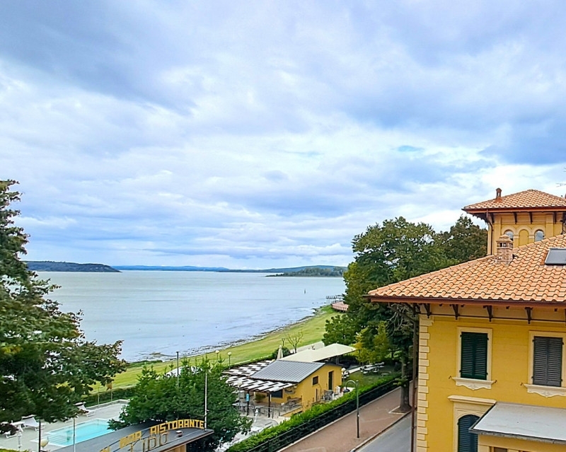 Al terzo piano di una delle palazzine più antiche di passignano, unica per gli splendidi affreschi del dottori nel vano scala raffiguranti le quattro stagioni, tutelati dalla soprintendenza, proponiamo un luminoso appartamento di circa 90 mq con vista lago.l'immobile si compone di un ampio corridoio, due camere matrimoniali con affaccio diretto sul lago, bagno finestrato e cucinotto separato dal soggiorno solo da un arco facilmente modificabile. Tutte le finestre godono di vista lago e dal soggiorno si accede a un terrazzino che si affaccia direttamente sul lungolago, a pochi passi da bar e ristoranti.gli infissi sono stati sostituiti appena 4 anni fa con modelli in pvc a doppio vetro, gli impianti elettrico e idraulico della cucina risalgono a circa 8 anni fa e la cucina è praticamente nuova. La caldaia è stata sostituita 3 anni fa. L'appartamento può essere venduto, se desiderato, completo di tutto l'arredo.la proprietà include inoltre un fondo di circa 11 mq al piano seminterrato e la palazzina è dotata di comodo ascensore, rendendo la vita quotidiana semplice e piacevole in questa location esclusiva.