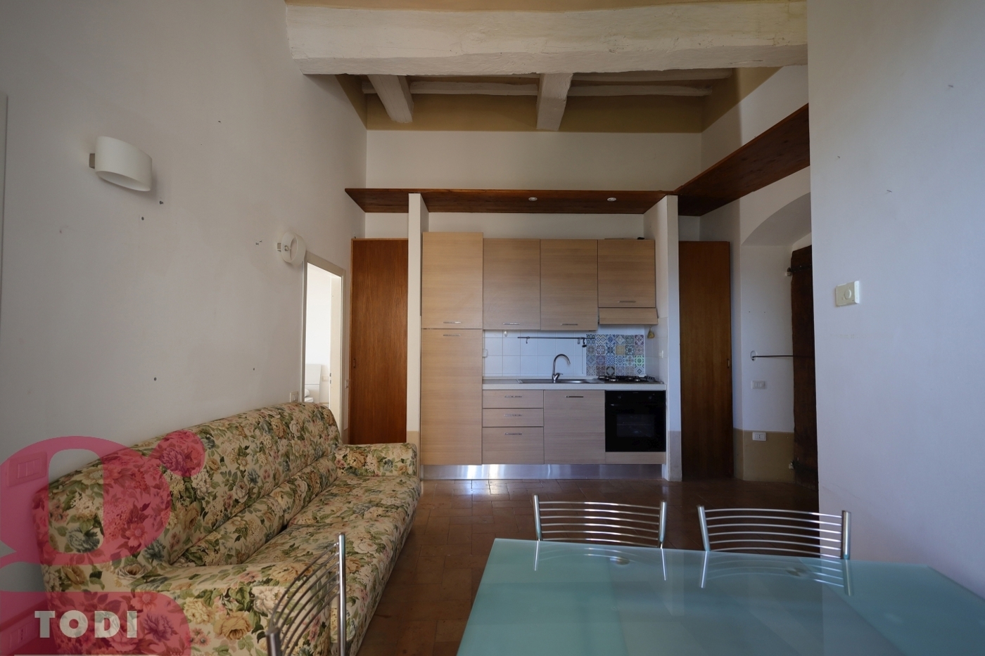 Todi, centro storico, appartamento luminoso e con bella vista sito al piano terra composto da: soggiorno con angolo cottura,1 camera matrimoniale,1 camera singola, bagno con doccia. Arredato